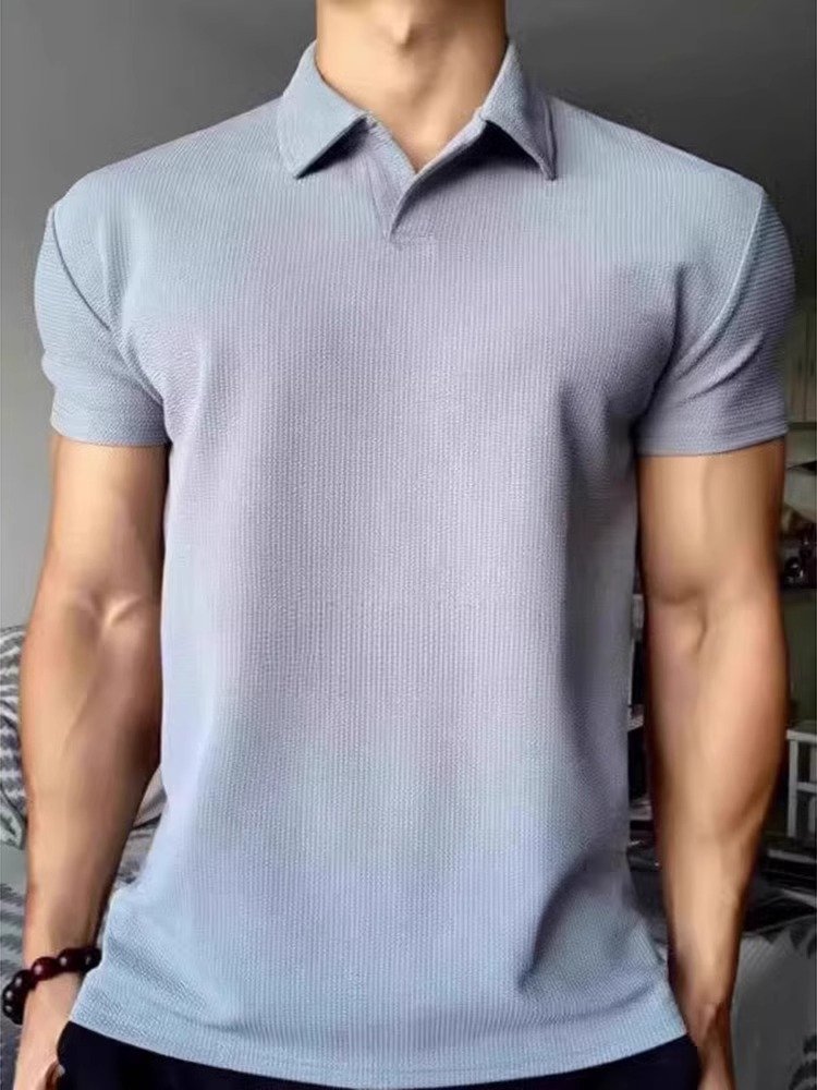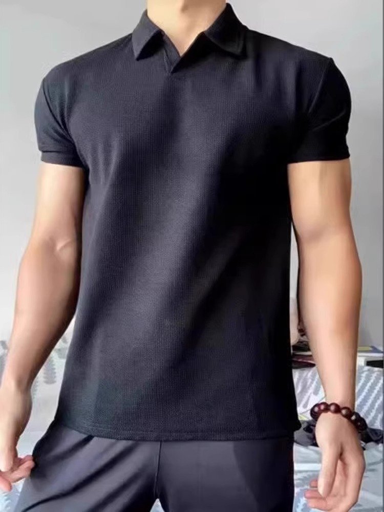 收袖口t恤男夏季美式重磅亨利领短袖翻领健