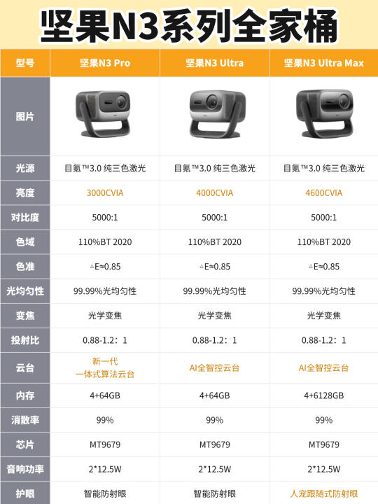 今天橙子给大家带来一篇热腾腾的对比评测,主角是市面上超级火的🔥坚果N3系列投影仪,一分钟让你学会怎么选❓