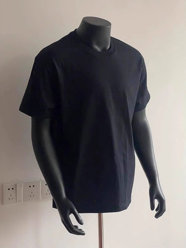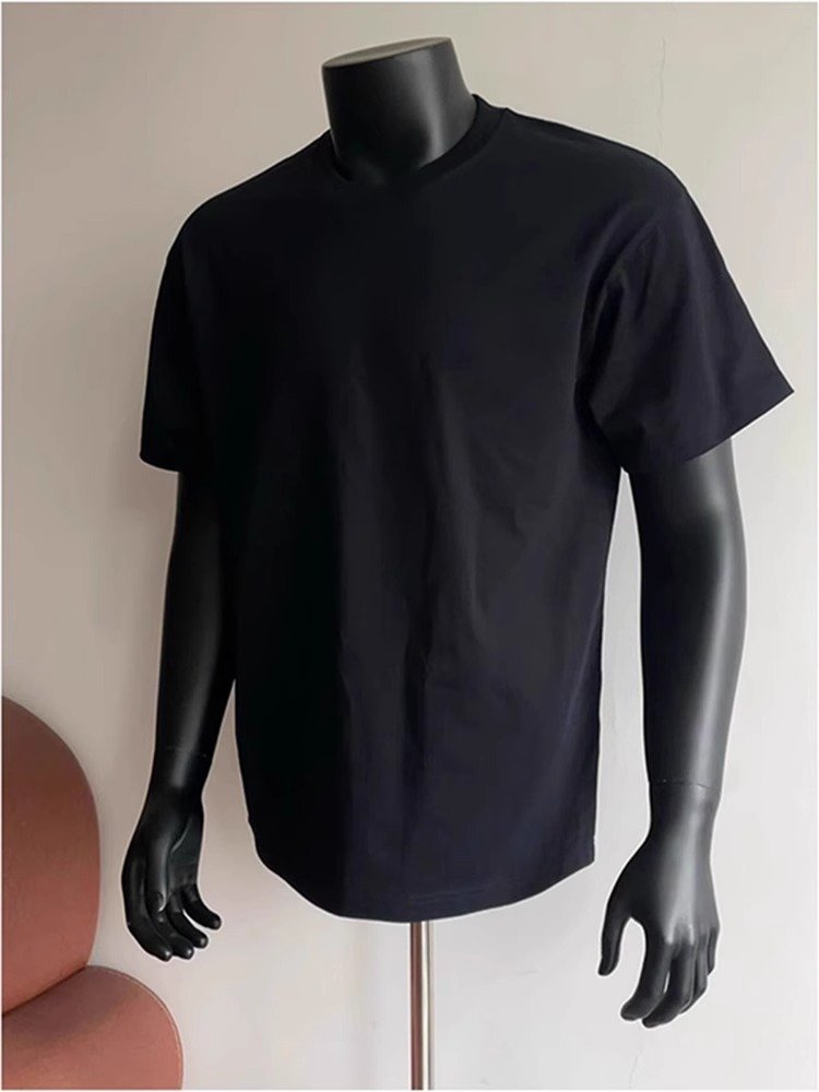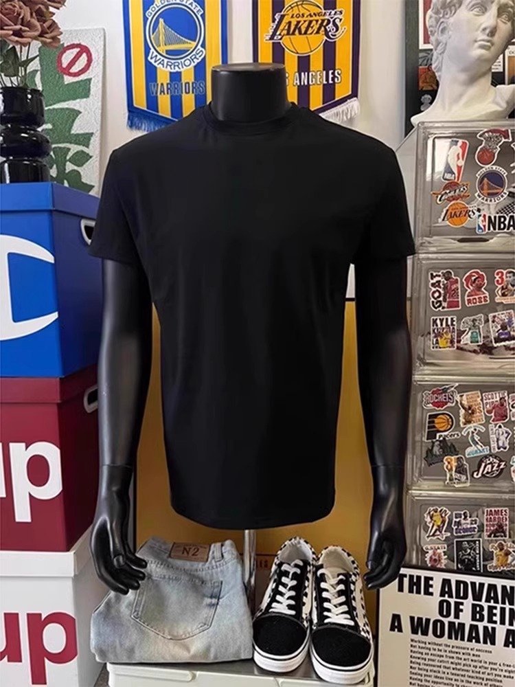 黑色正肩修身短袖男款夏季美式小领口重磅t