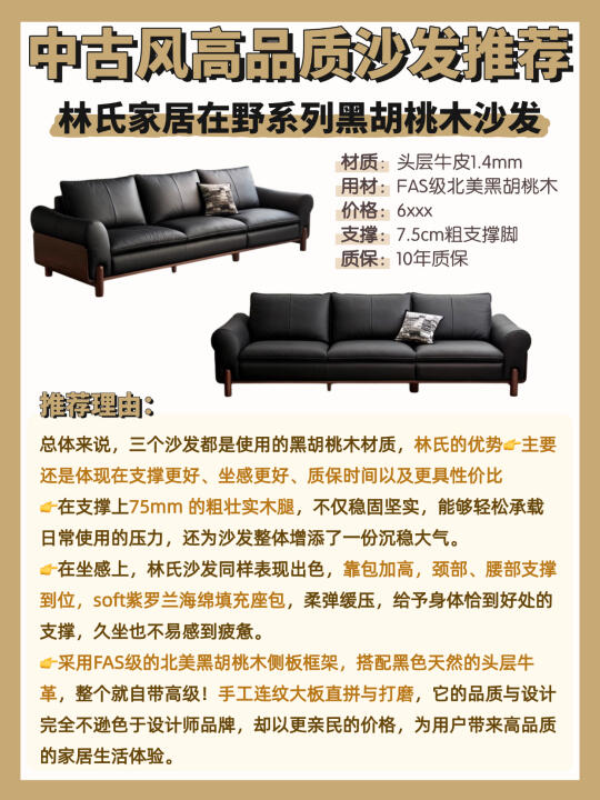 今天橙子🍊给大家深扒出来了3款适合中古风的胡桃木沙发