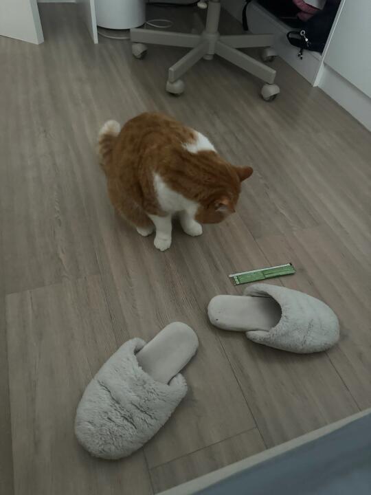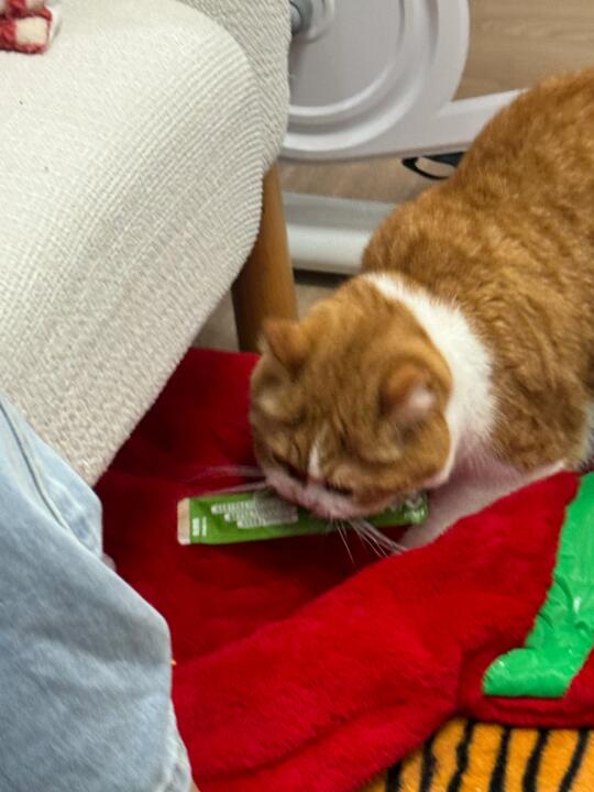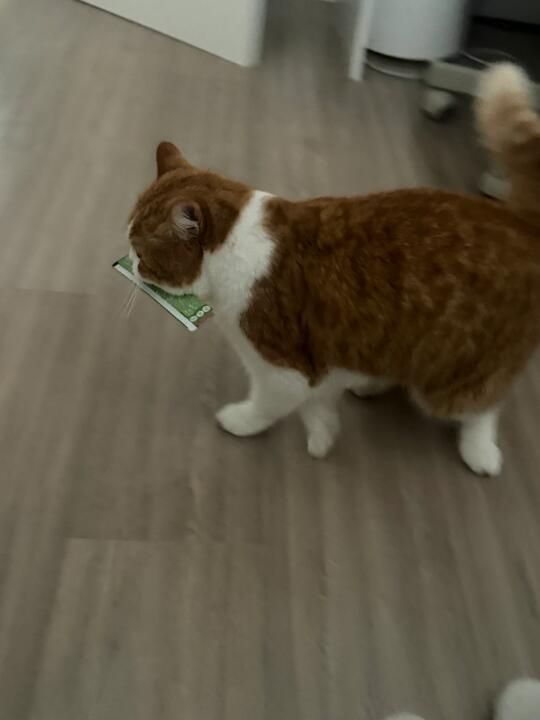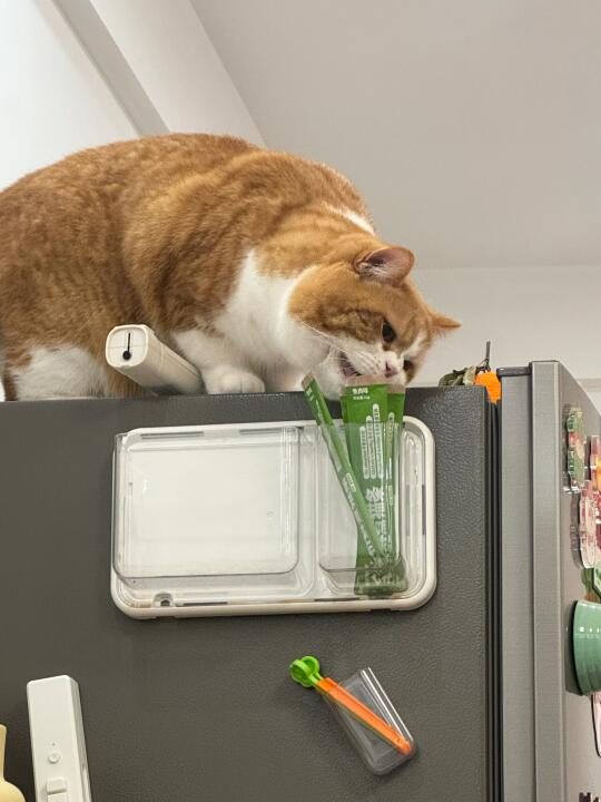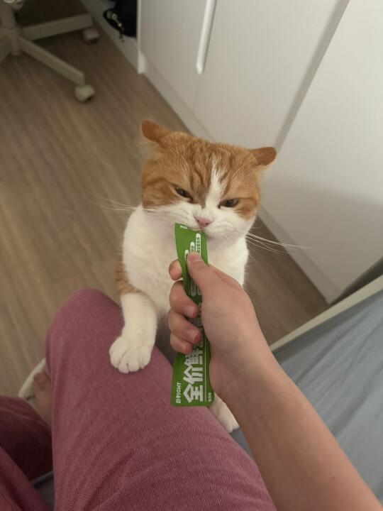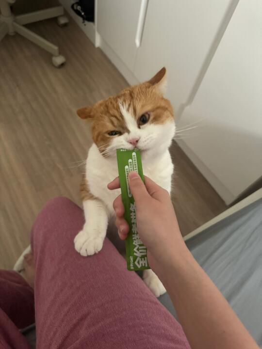 怎么跟人解释我的猫会自己挑选猫条 并且放到我床边叫我开给他吃啊???? 还好我拍到了[汗颜R][汗颜R][汗颜R]