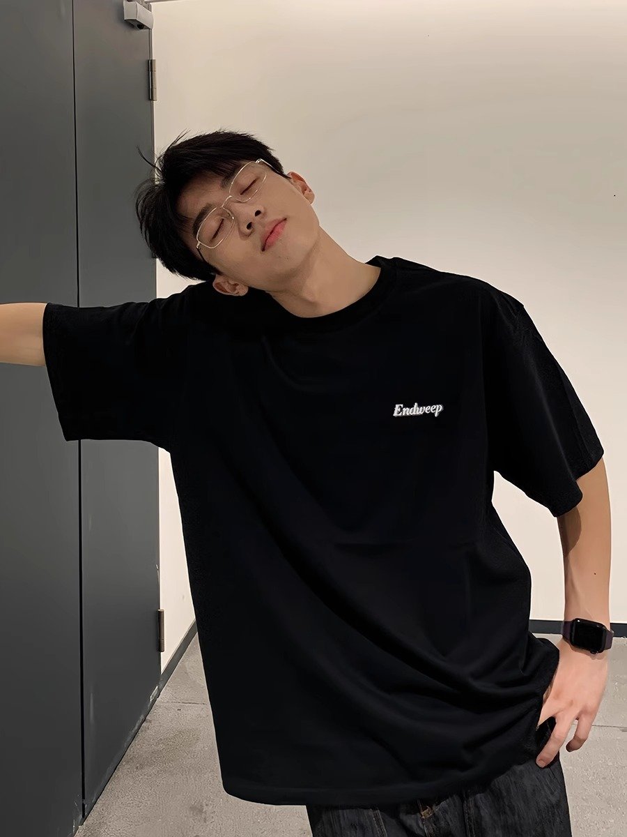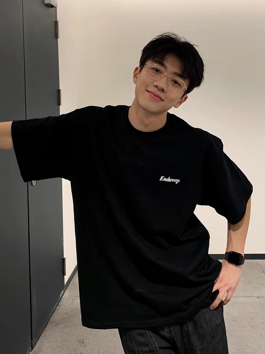 黑色闪电印花短袖男夏季少年感小领口半袖t