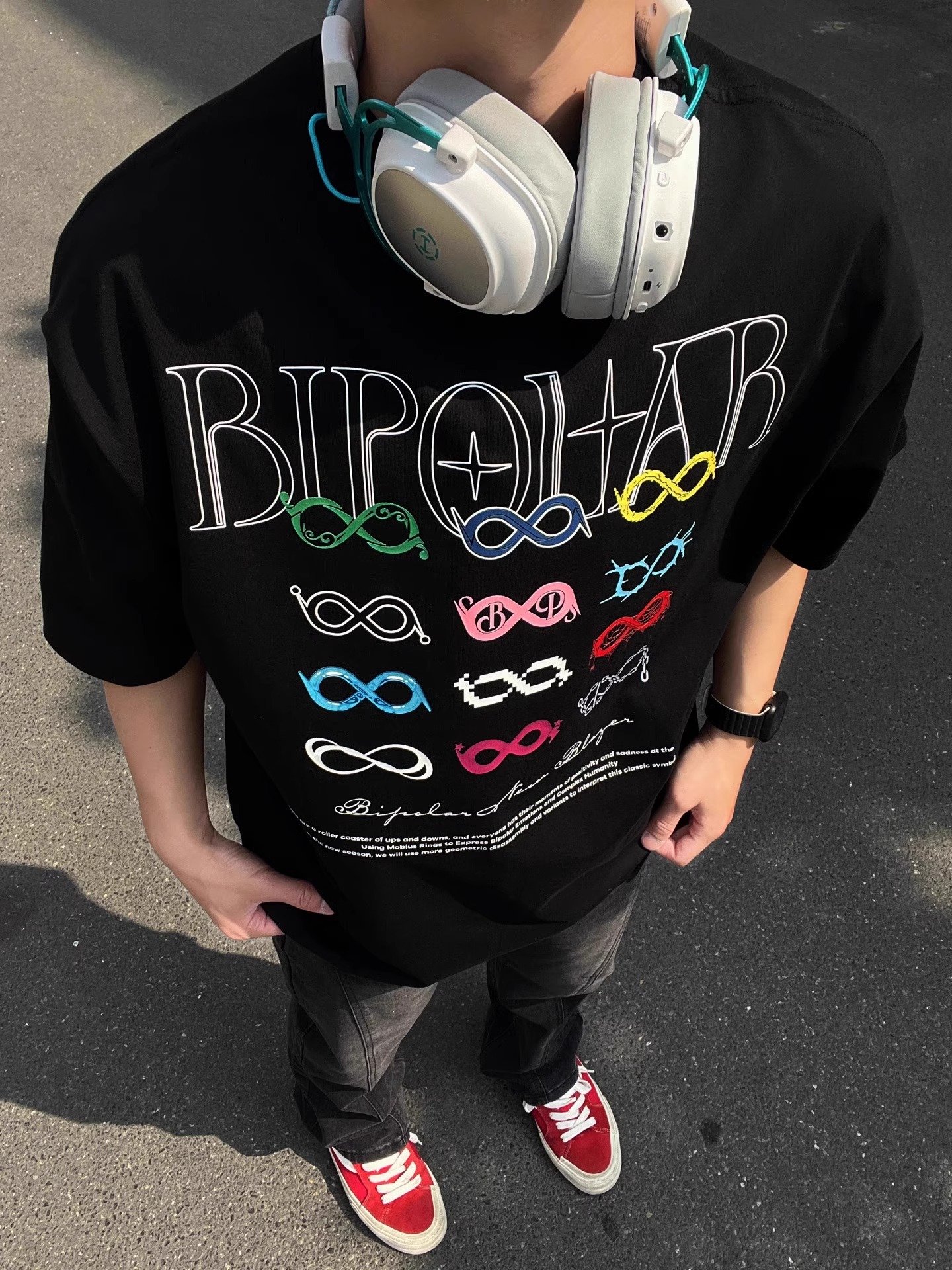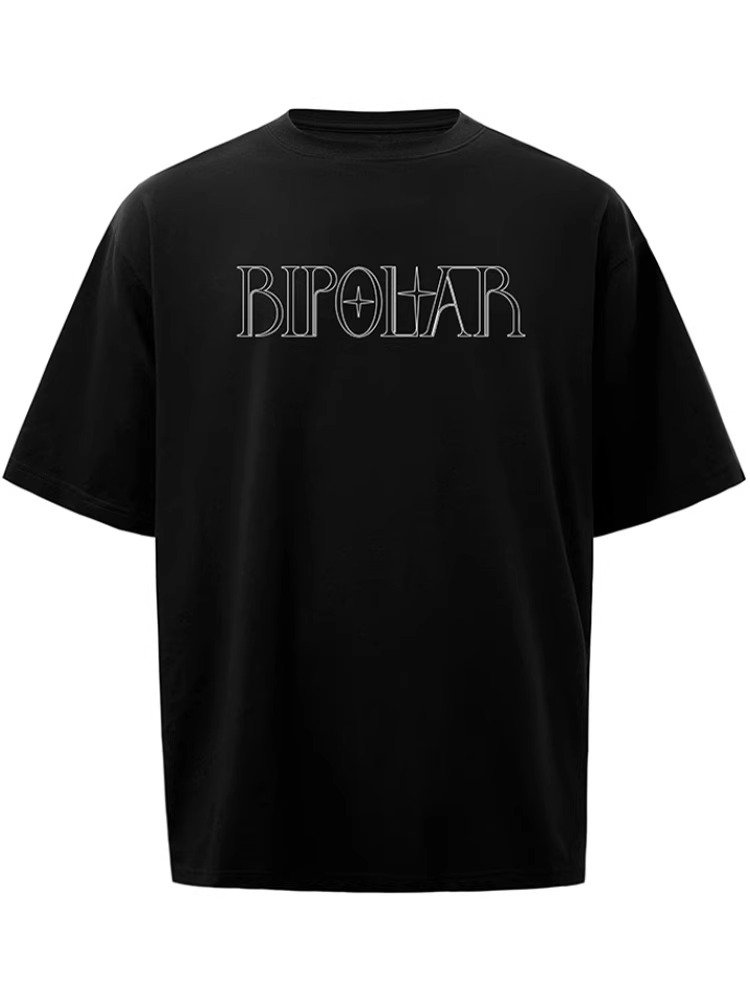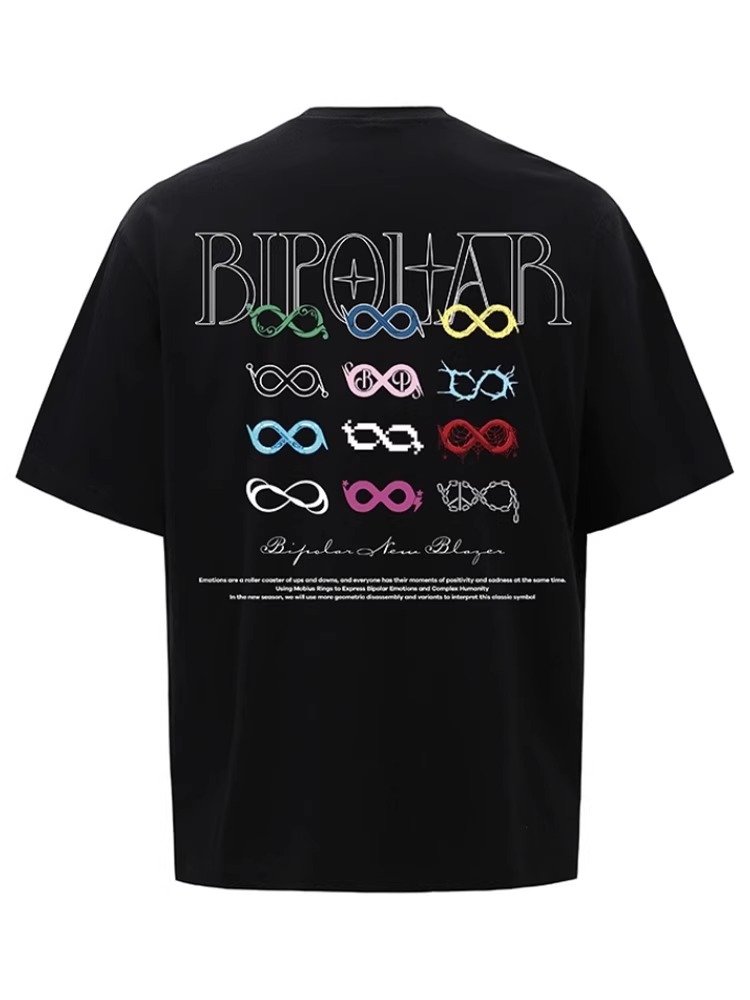 黑色闪电印花短袖男夏季少年感小领口半袖t