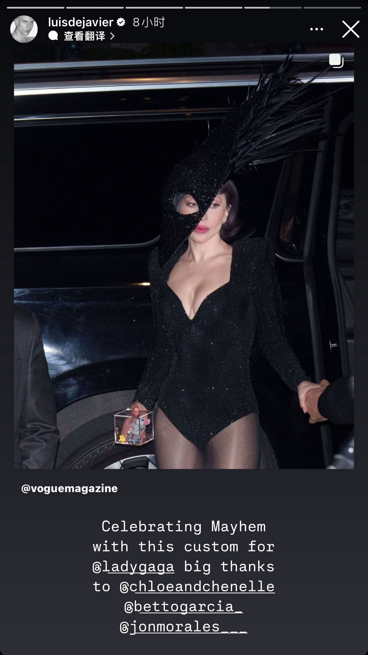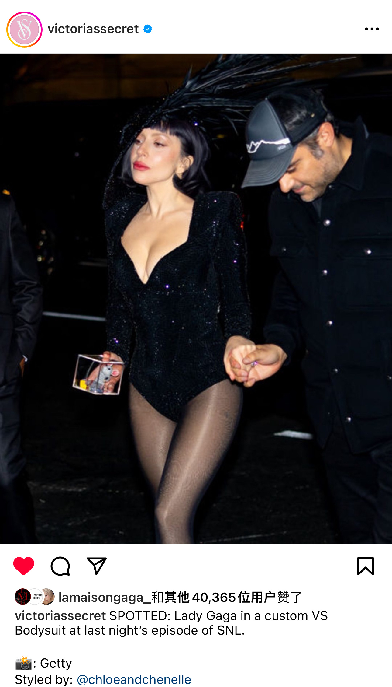 Lady Gaga 亮相SNL 庆功宴派对造型,身穿Victoria's Secret 特别定制连体装,帽子来自Luis De Javier 特别定制,这一套才是Gaga 的正确打开方式,G社生图状态相当优越。