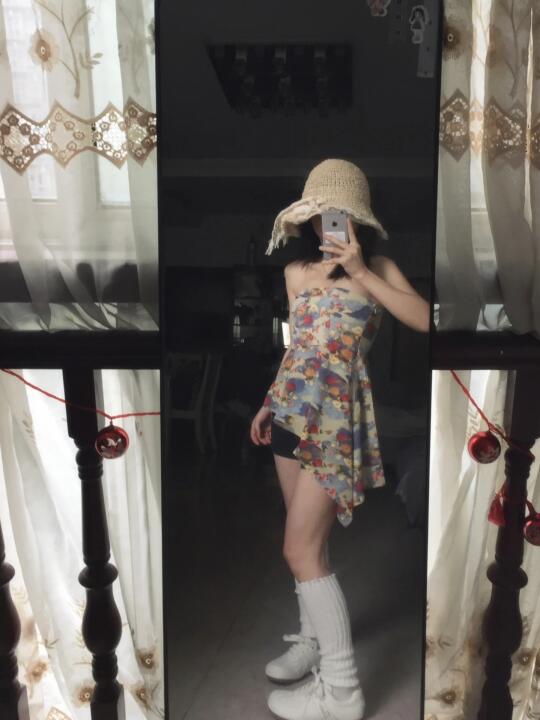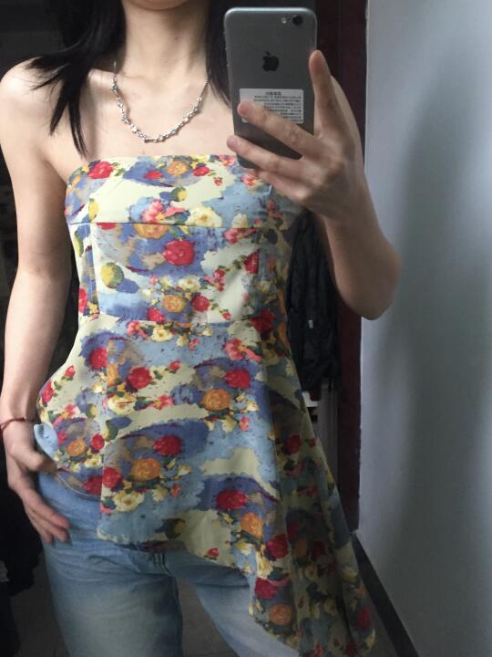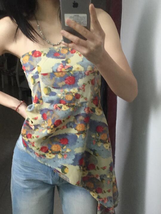 复古碎花的感觉,不规则的长度设计 不管是搭配短裤还是长裤都好好看!