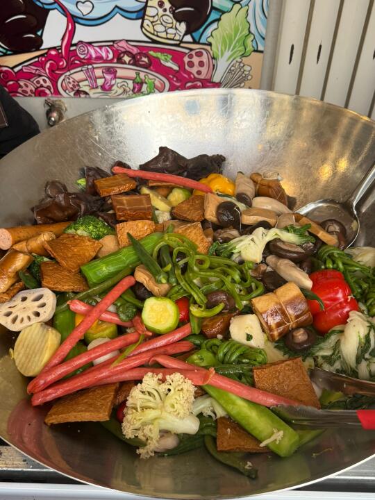 不知道别的地方有木有 家门口新开的 广开四马路地铁站附近 蔬菜肉一锅出 今天去的时候肉比较少 说猪头肉还没做好 买了一小盒 尝尝