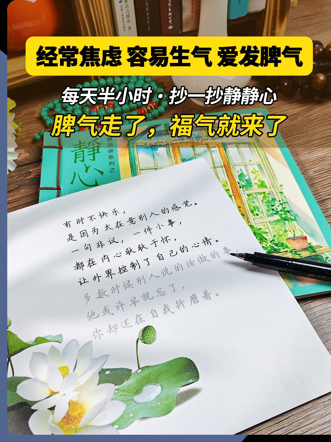别让你的脾气挡住了你的福气!做一个安静的女子,低谷烦躁的时候,不要说话,不要随意发脾气,不妨试着抄一抄写一写,让内心回归平静,能稳定情绪就不要内耗自己,不焦虑不生气,脾气走了,福气就来了。
