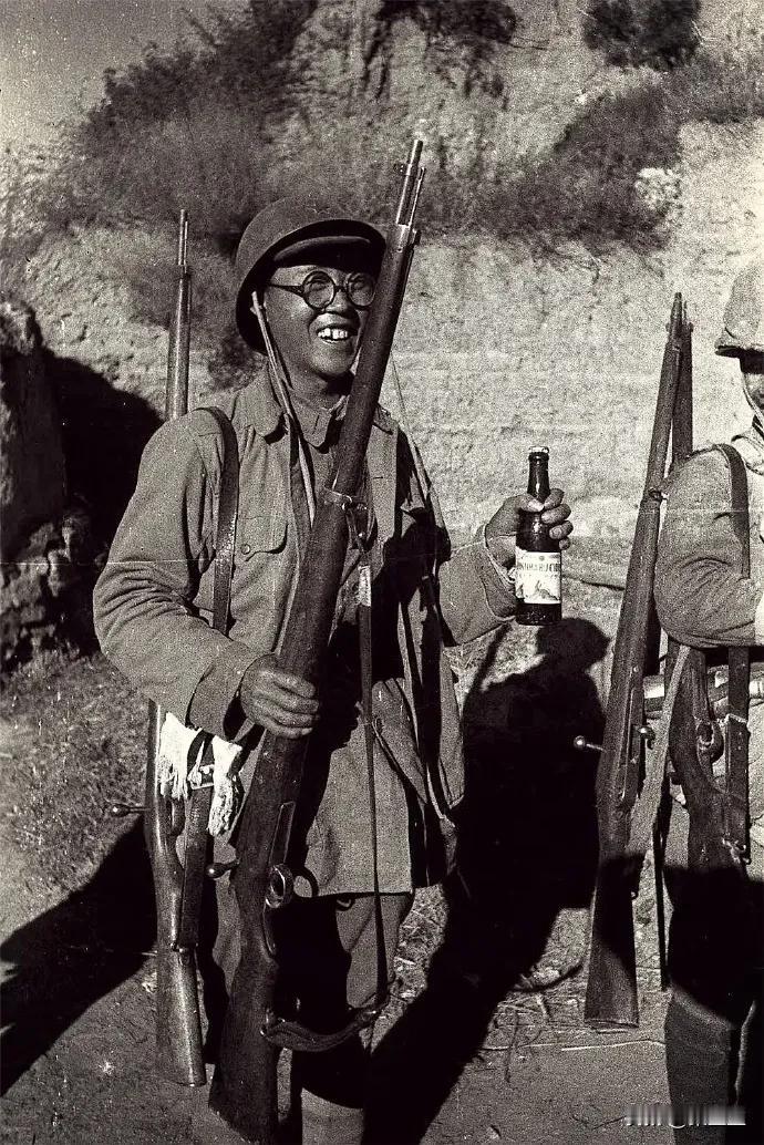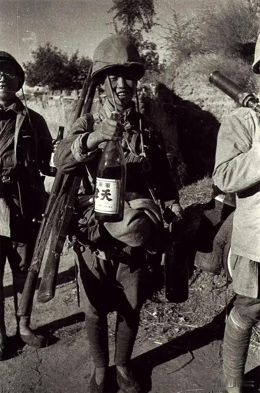 这是抗战时期我军展示缴获的日军电话,日本清酒,和步枪掷弹筒等武器装备等战利品。 估计这应该是攻击了一个据点吧!你看他那个通讯器材在一个木板子上 。而且还有清酒。这么大的酒瓶子,估计不可能日军在野外战斗时也拿着。