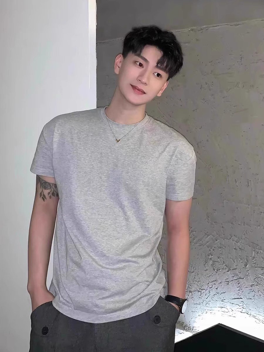 花灰色小领口t恤男夏季美式重磅健身短袖c