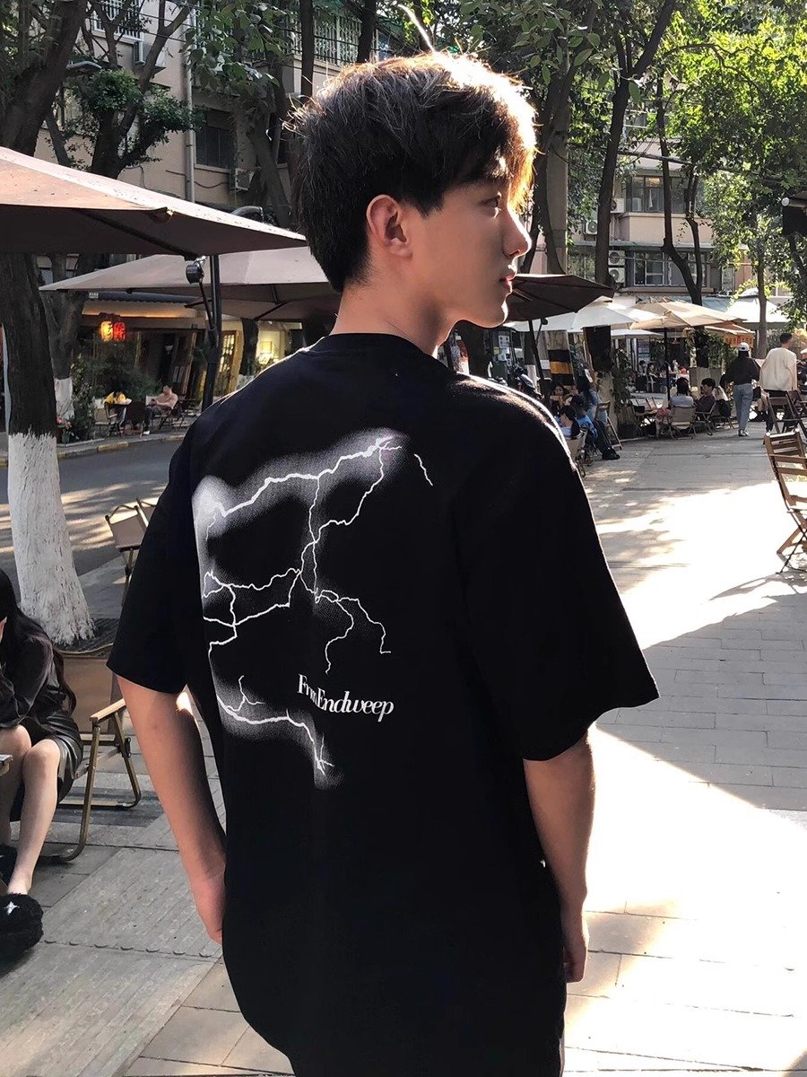 闪电印花正肩t恤男款夏季cleanfit