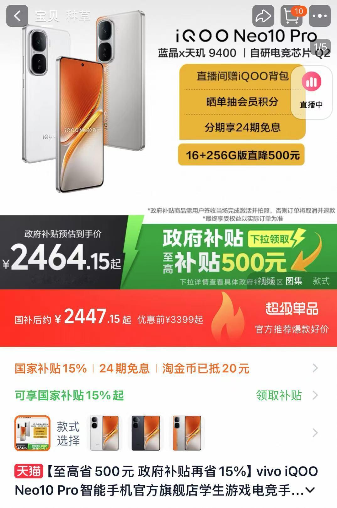 前有2599的骁龙8至尊版,后有2464的天玑9400,首发都在喊涨价亏本,现在国补完的价格一个比一个猛,还等啥618啊[坏笑]