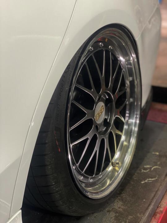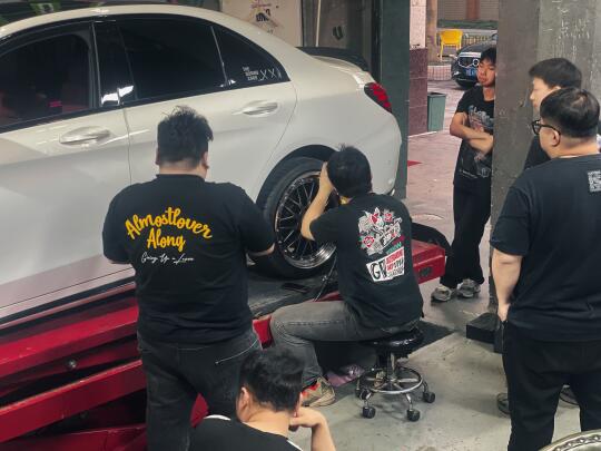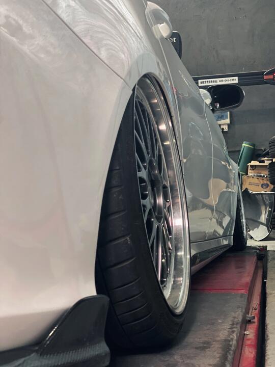 又要低开,又要不刮叶子板, 而且还要轮毂必须突出车身。 那必须要做的一件事,就是叶子板内侧的打磨。 附上最后一张,打磨后最低行走姿态。