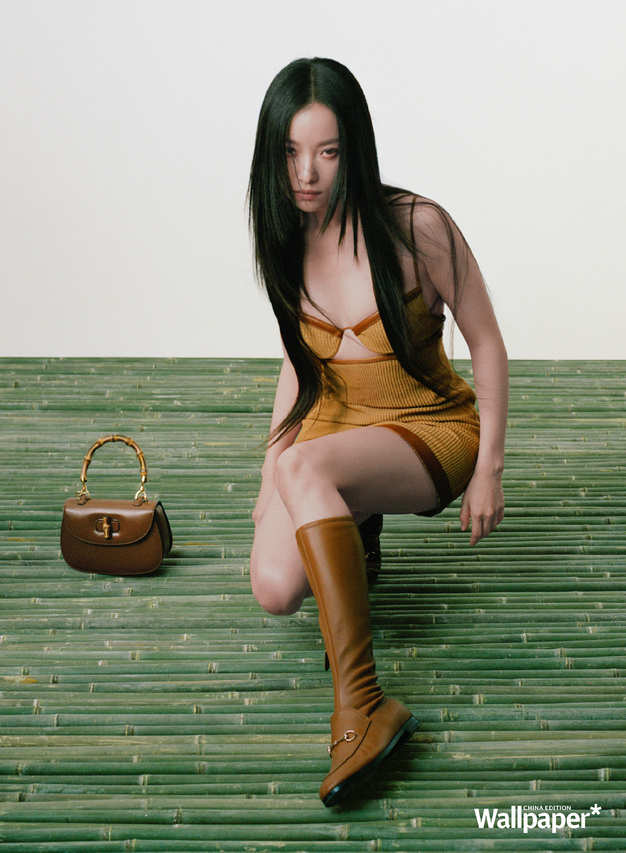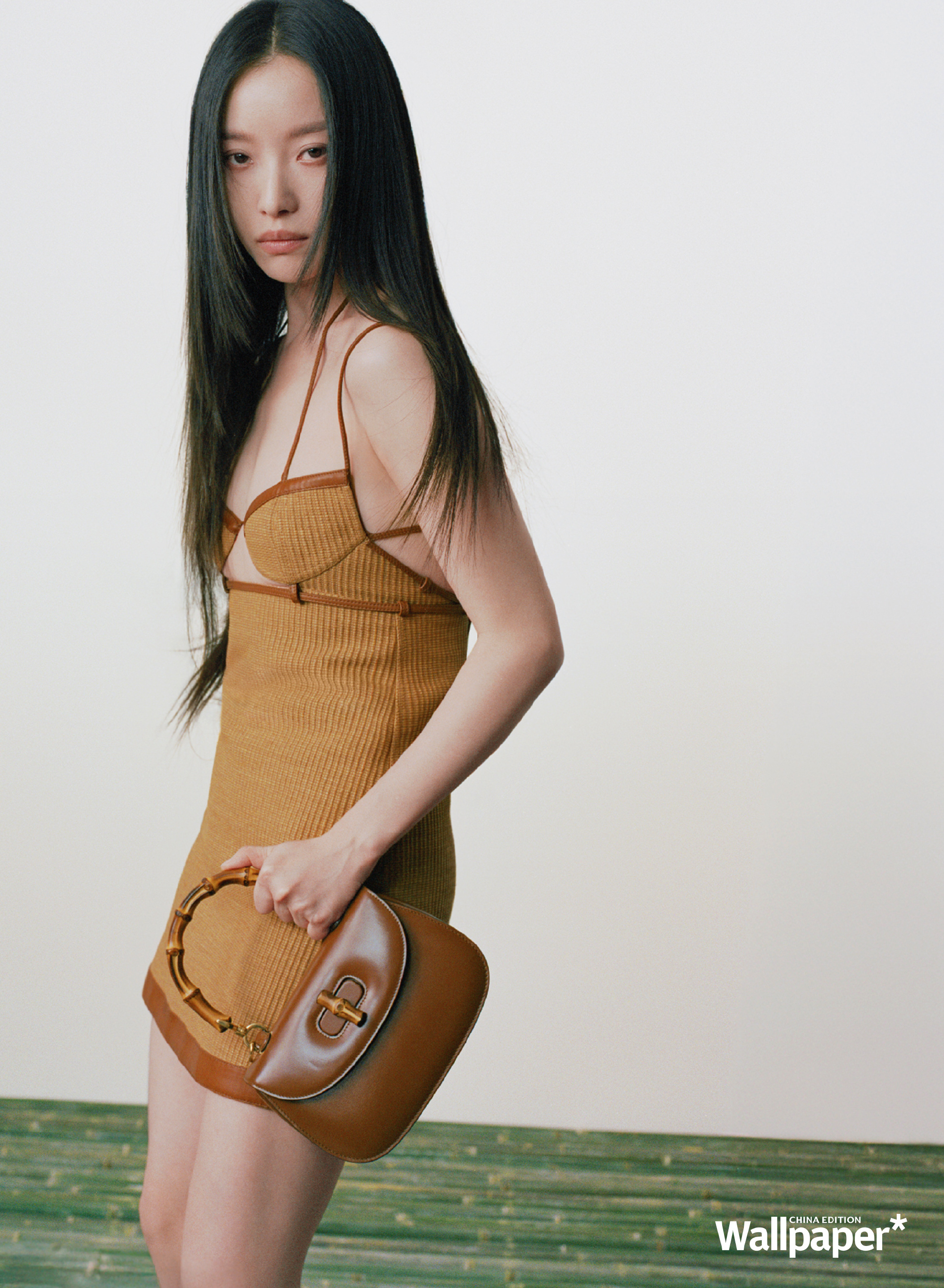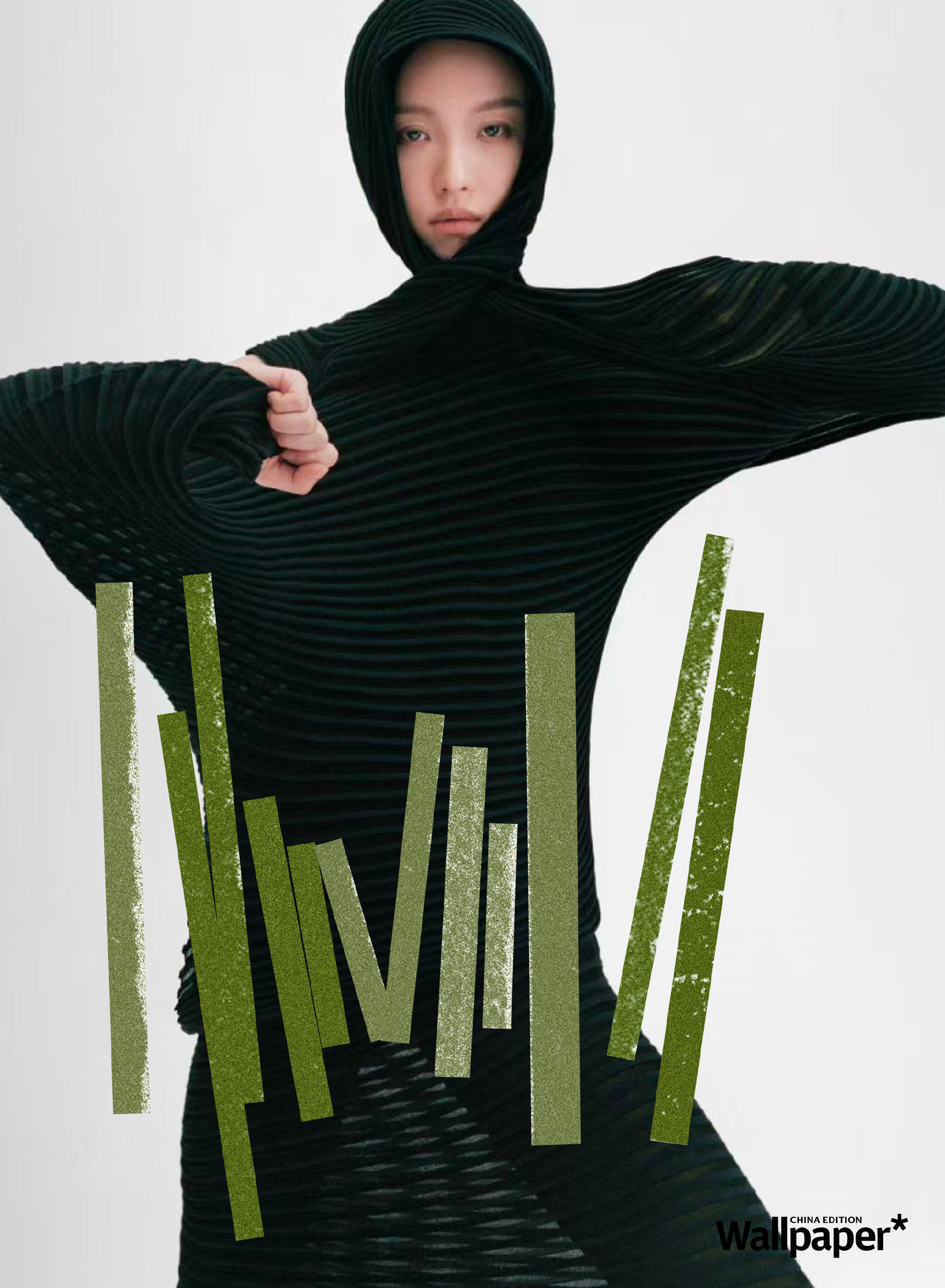 倪妮亮相Wallpaper中文版三月刊封面大片,身穿Gucci 2025春夏系列,绿色竹节,清新简约,淡雅美丽。倪妮的竹节穿衣法倪妮竹林极简大片