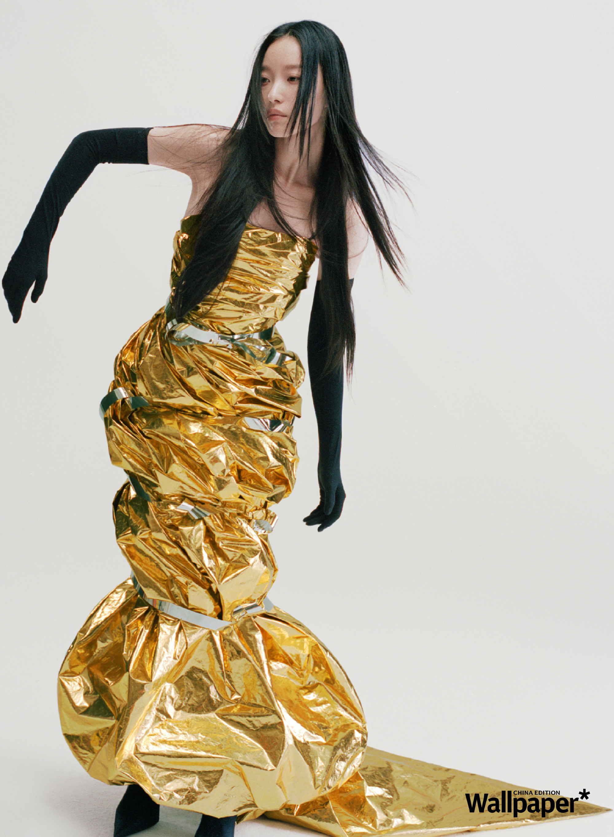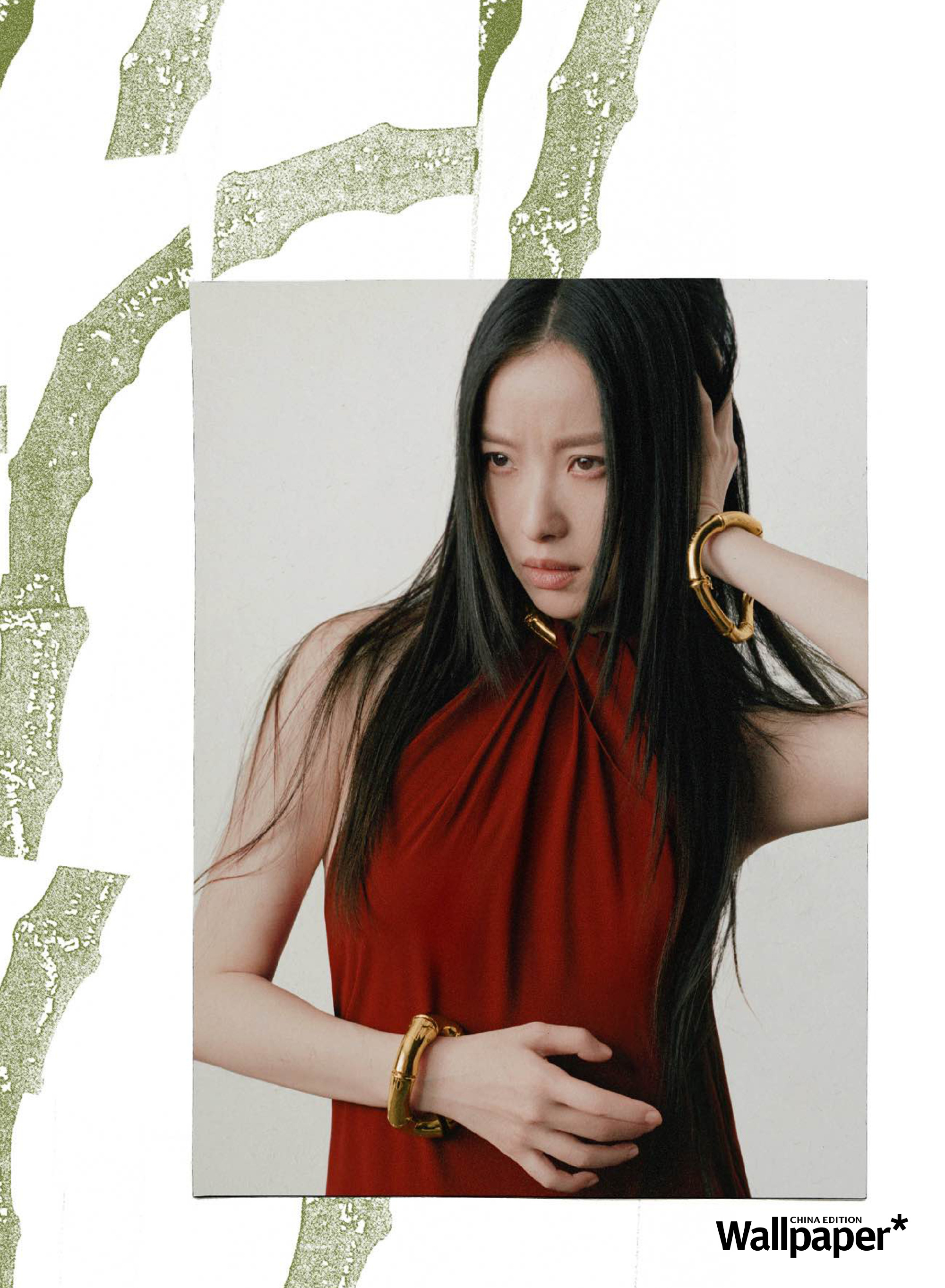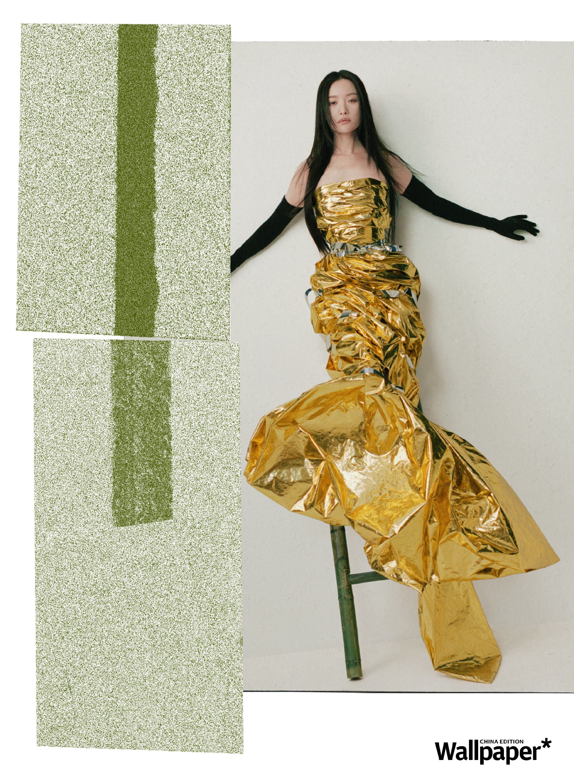 倪妮亮相Wallpaper中文版三月刊封面大片,身穿Gucci 2025春夏系列,绿色竹节,清新简约,淡雅美丽。倪妮的竹节穿衣法倪妮竹林极简大片