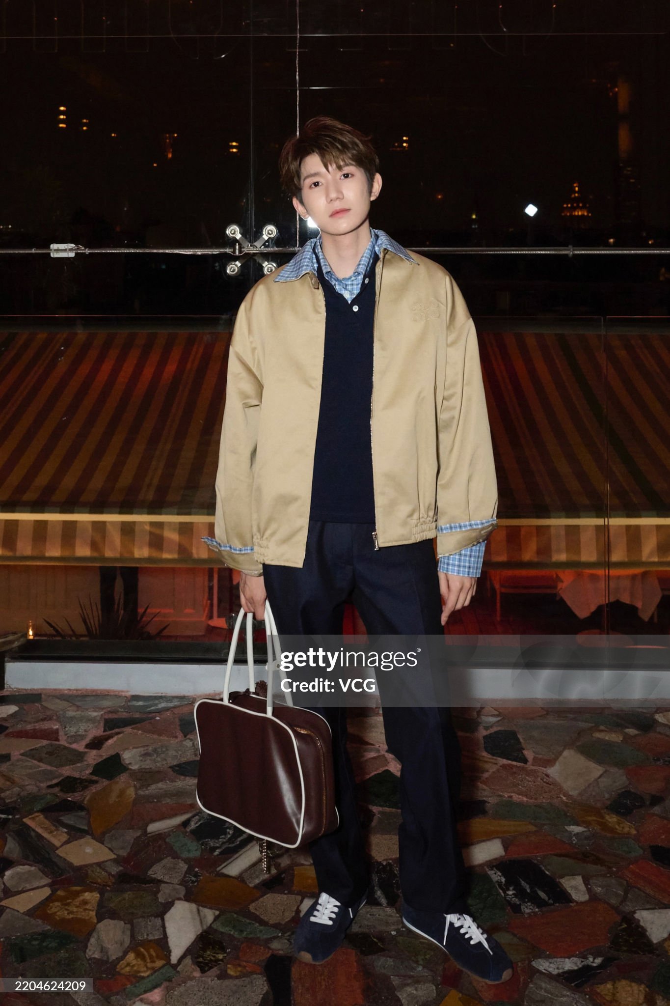 王源亮相MiuMiu晚宴G社生图,状态优越,身穿棕色夹克,展现轻松时髦魅力。