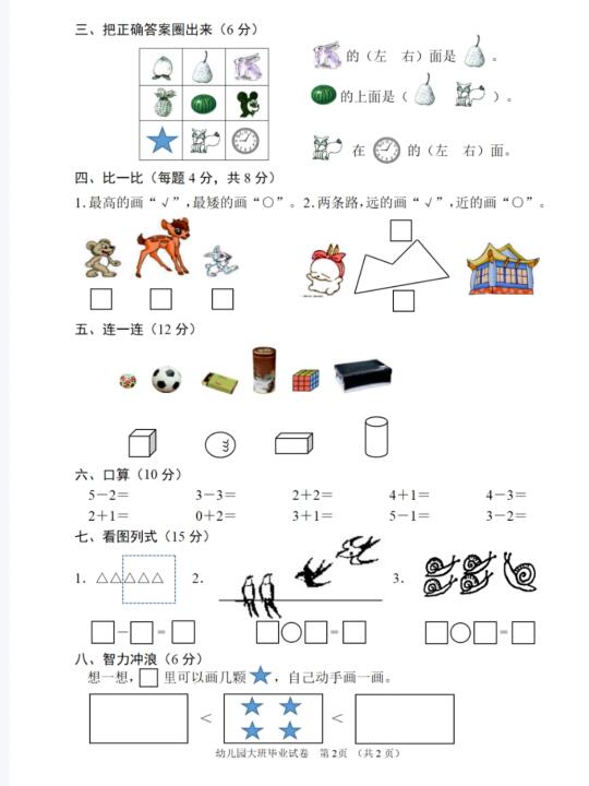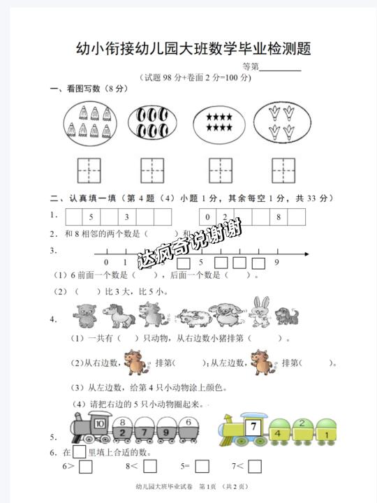 机构都在用的大班幼小衔接数学检测卷