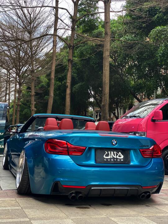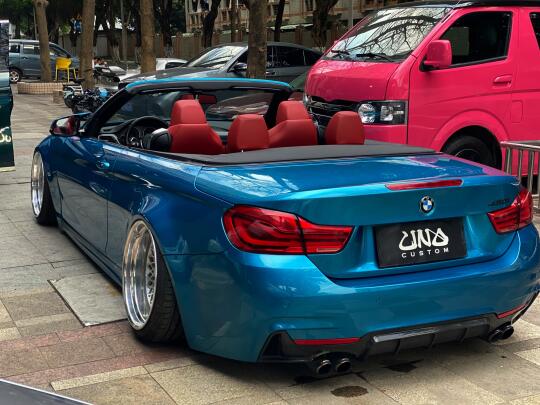 宝马430i敞篷未完待续, 大哥说,接下来要改后唇定制尾翼, 要的就是街上没有的款式,那就只能手工安排上! 以下是改装清单 airlift3h气动系统 scc气囊避震 uno wheel两片锻造轮毂 手工宽体 前后定制底盘倾角件