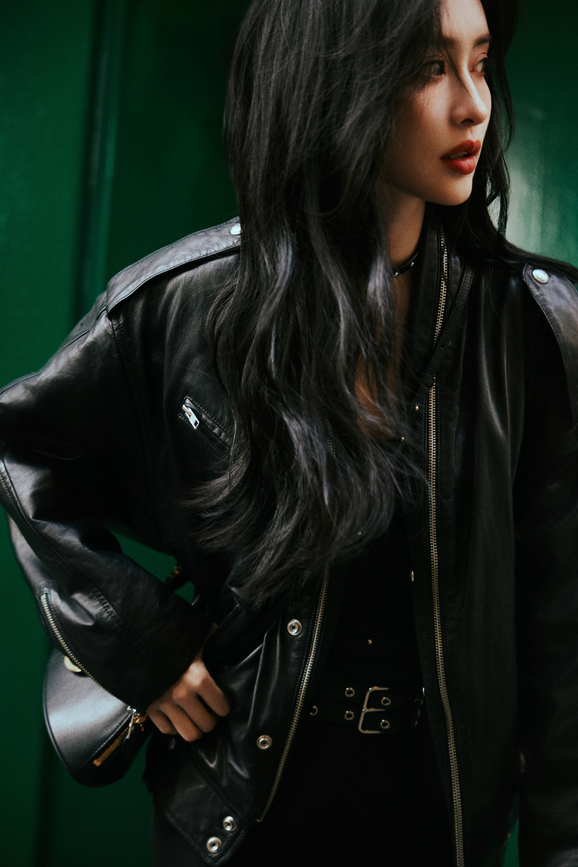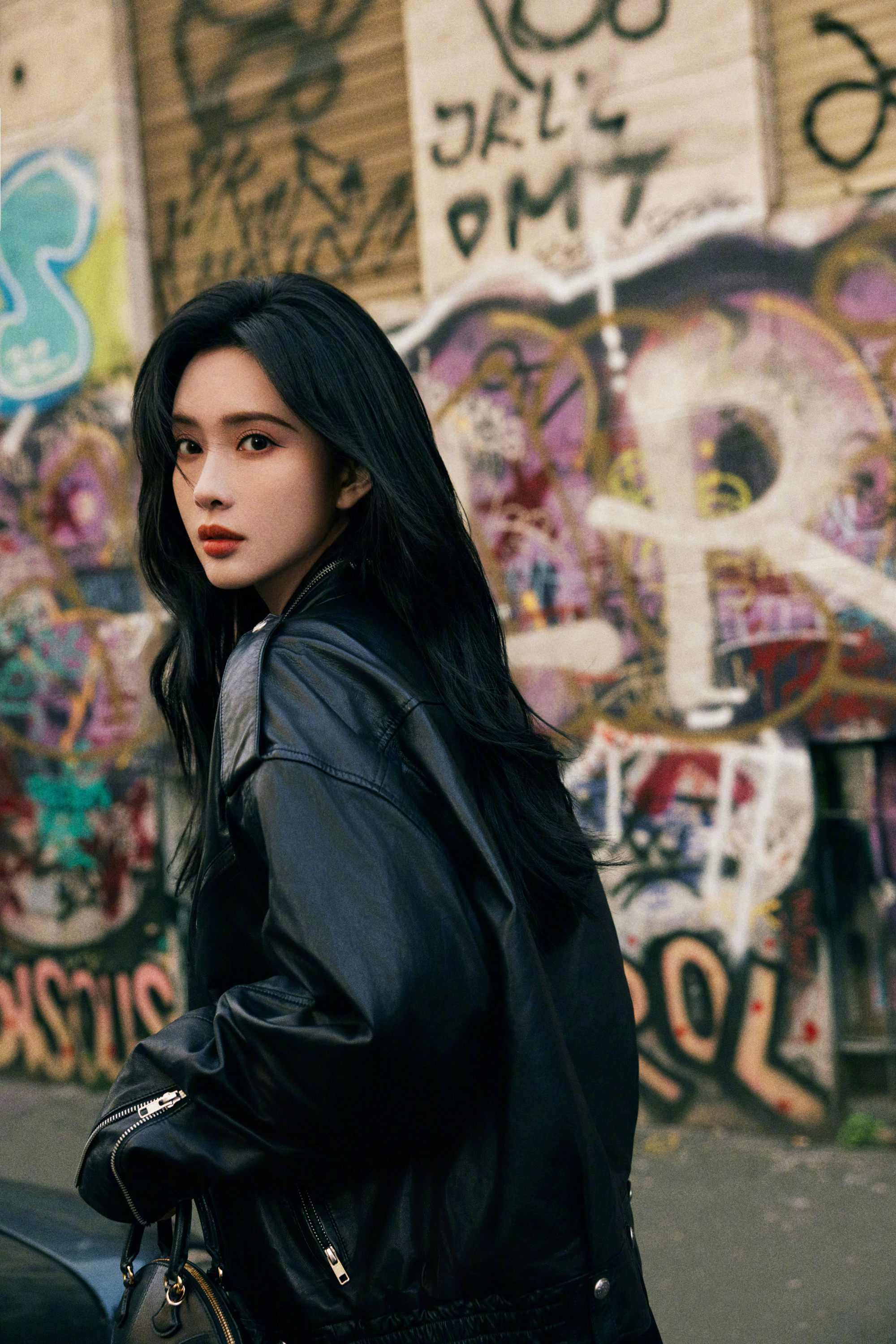 孟子义米兰时装周一组新大片,手握宝格丽新季手袋,皮衣造型化身复古港风御姐,在米兰