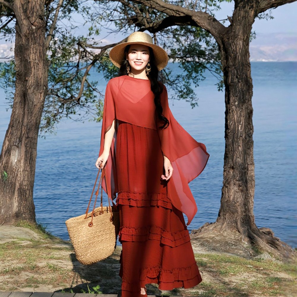 春季超好看法式气质挂脖连衣裙海边度假裙子