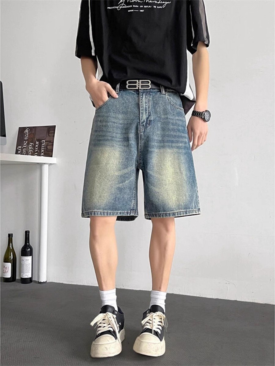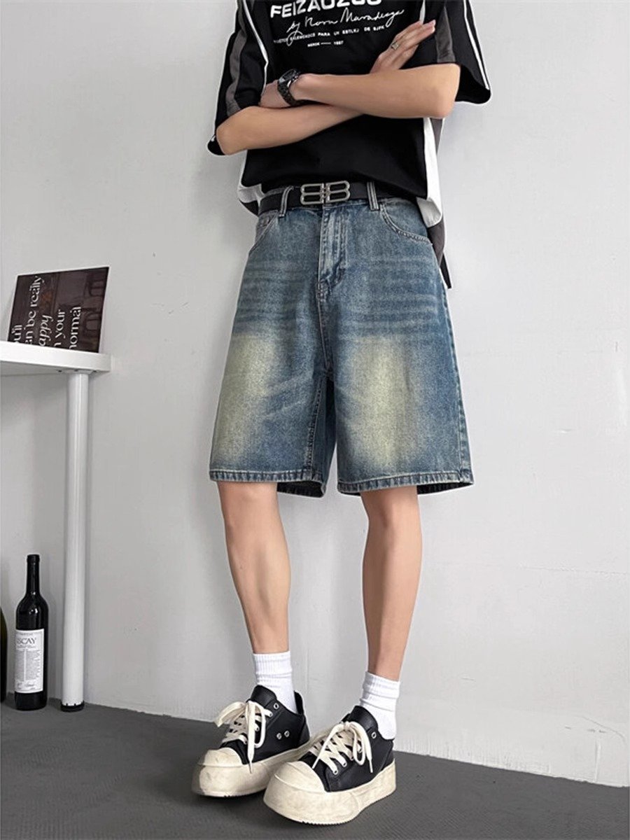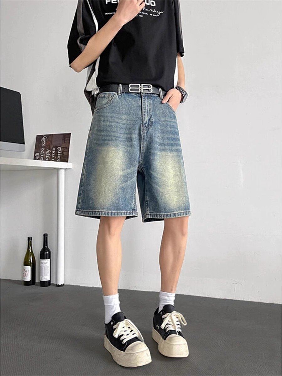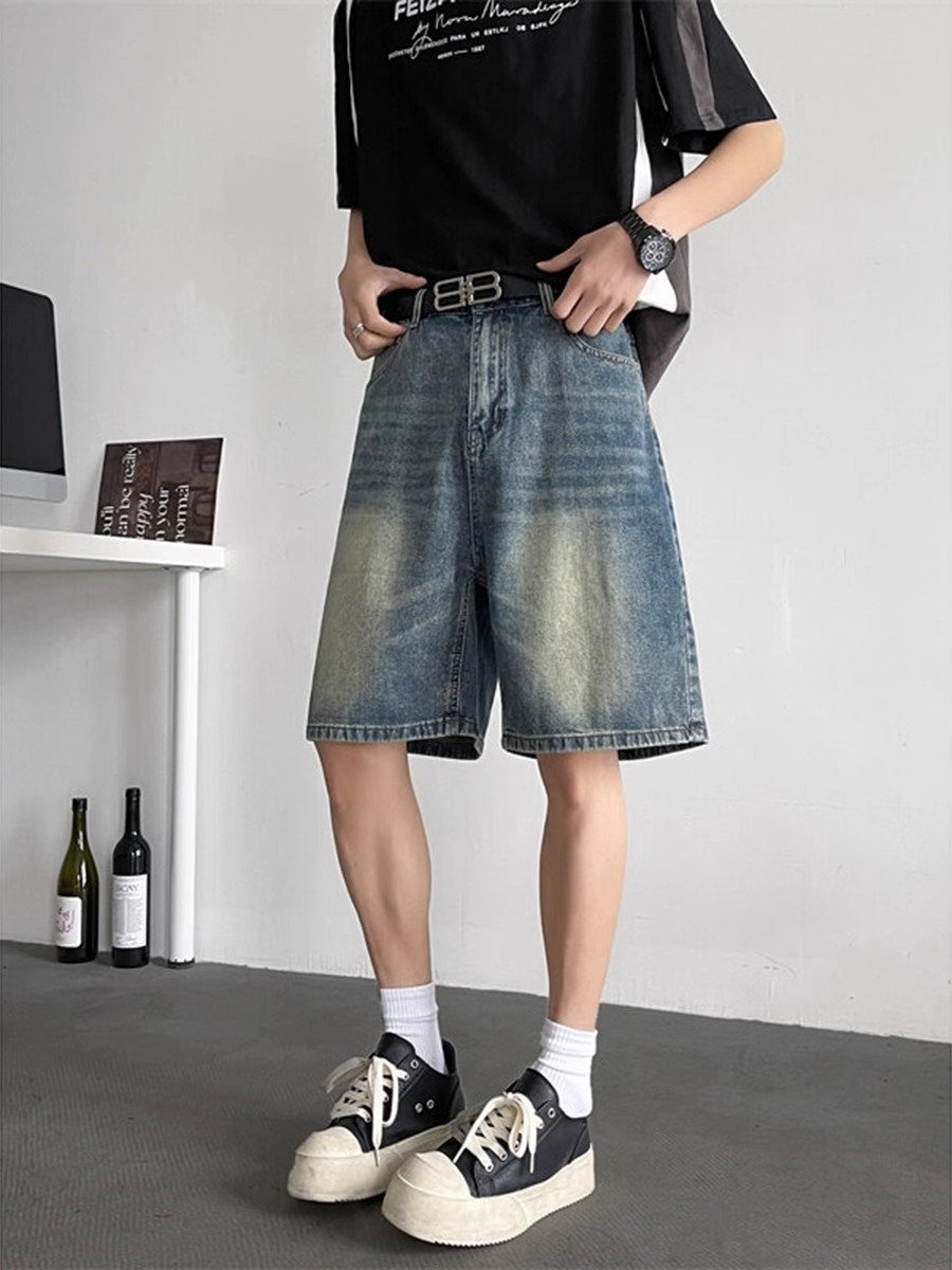 蓝色水洗牛仔短裤男款夏季美式高街vibe