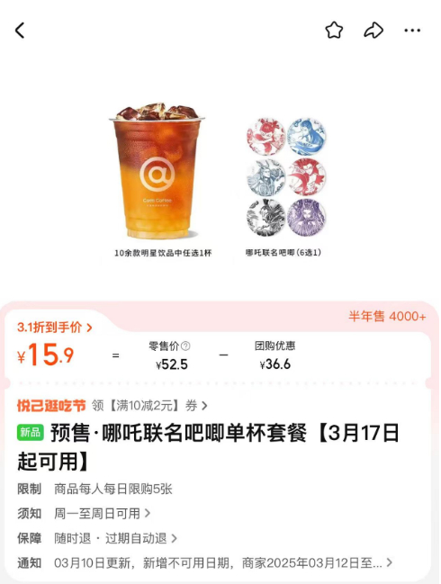 哪吒联名预售周边又卖爆了库迪和大众点评这次真是赢麻了,哪吒在拿下多个广告代言之后,又与库迪咖啡联名推出冰箱贴、徽章、吧唧等周边套餐,听说还有人集齐了所有的周边,已经坐等17号去兑换了,而且大众点评还有独家限时4.99元秒杀活动,每日限量500份,火爆程度堪比抢灵珠,别等了就现在上大众点评🔍【库迪哪吒】,戳👉赶紧冲啊 库迪哪吒联名哪吒2最强周边来了库迪联名哪吒2