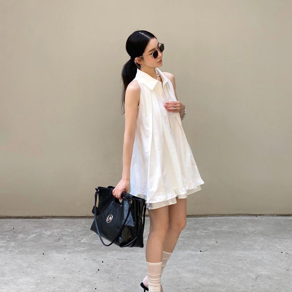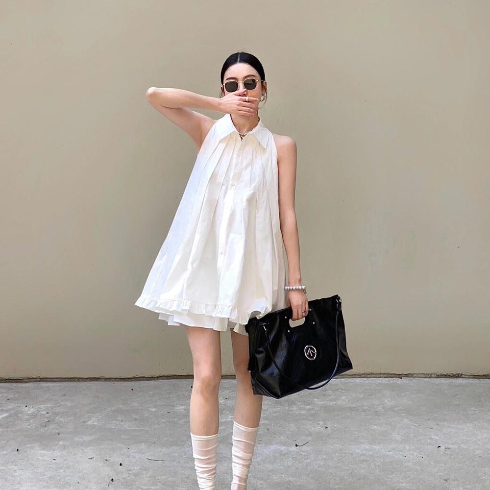 新款高级感法式白色无袖连衣裙韩系收腰裙子