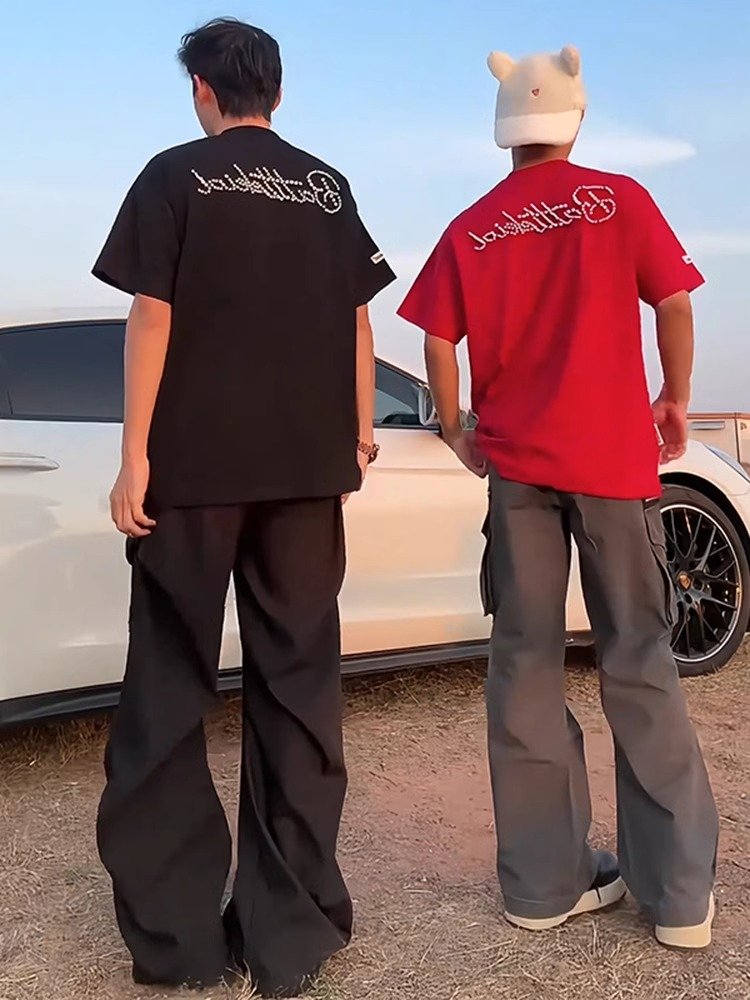 亿万少年bufu立体钉珠字母刺绣t恤男夏