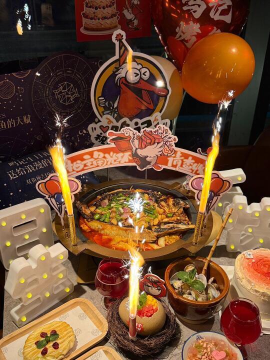 鸣记海鲜烤鱼 鸣记橘子海 鸣记生日烤鱼 生日仪式感 星座抱枕 烤鱼推荐 观海店 生日必去