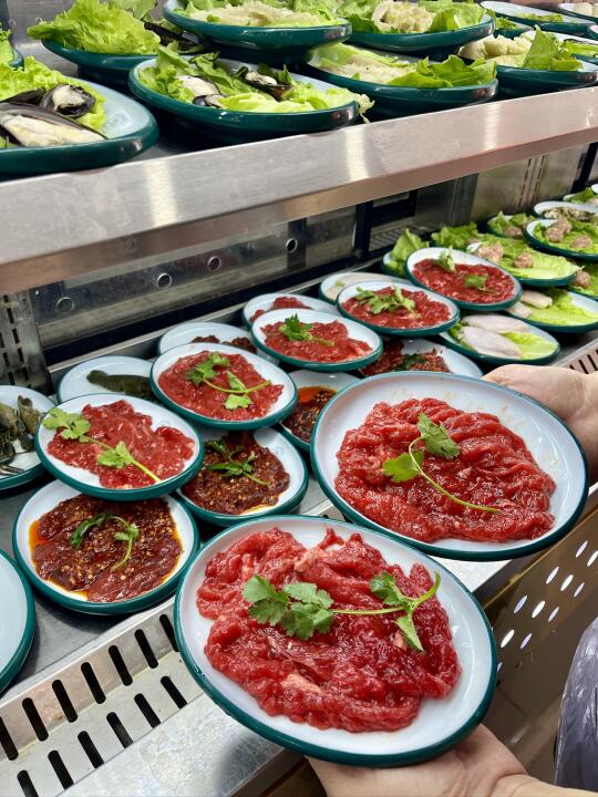广州这家自助真的绝了。。超级好吃!! 牛肉、海鲜、水果、饮料等等全部自助!! 随便吃。。而且服务态度尊滴敲好!! 海鲜池捞出来虾还会动的🦞