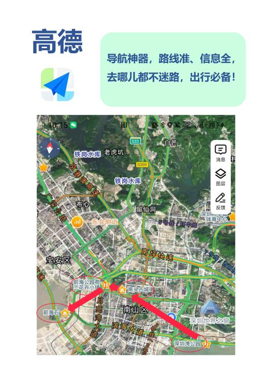 导航神器,路线准、信息全,去哪儿都不迷路,出行不能没有它!而且我打车也喜欢用高德,价格总是比别的平 台更加划算~