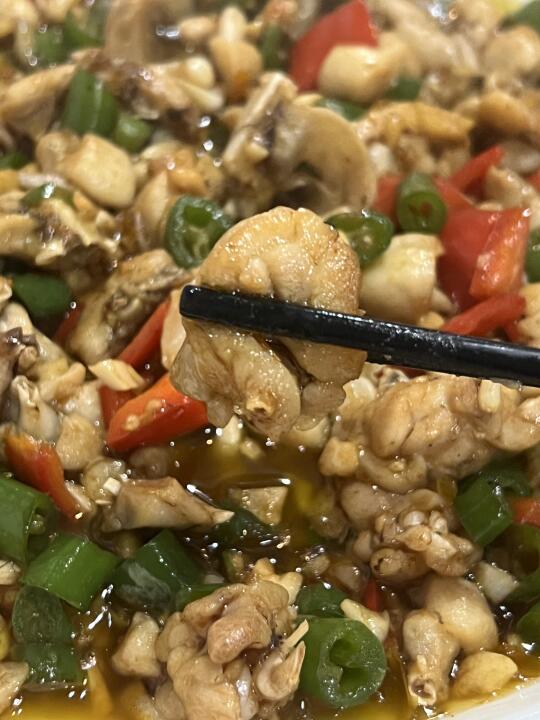 蛙肉切得很大块!烧的入味 调汁不错 微辣而已