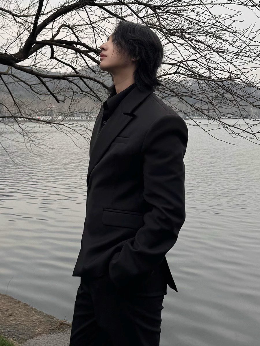 黑色垫肩西装外套男款春秋英伦雅痞男装高级