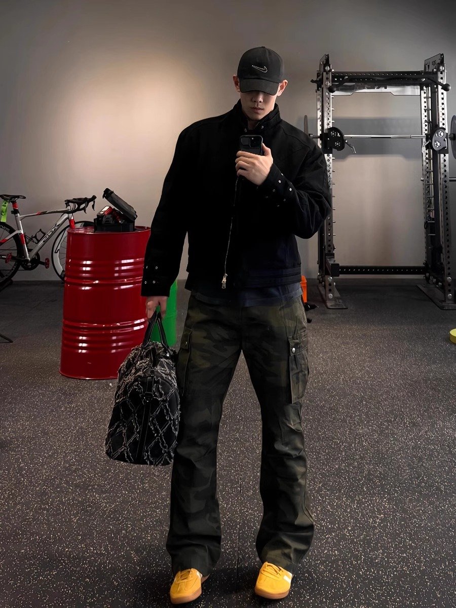 多口袋迷彩工装裤男款春秋美式硬汉风伐木裤