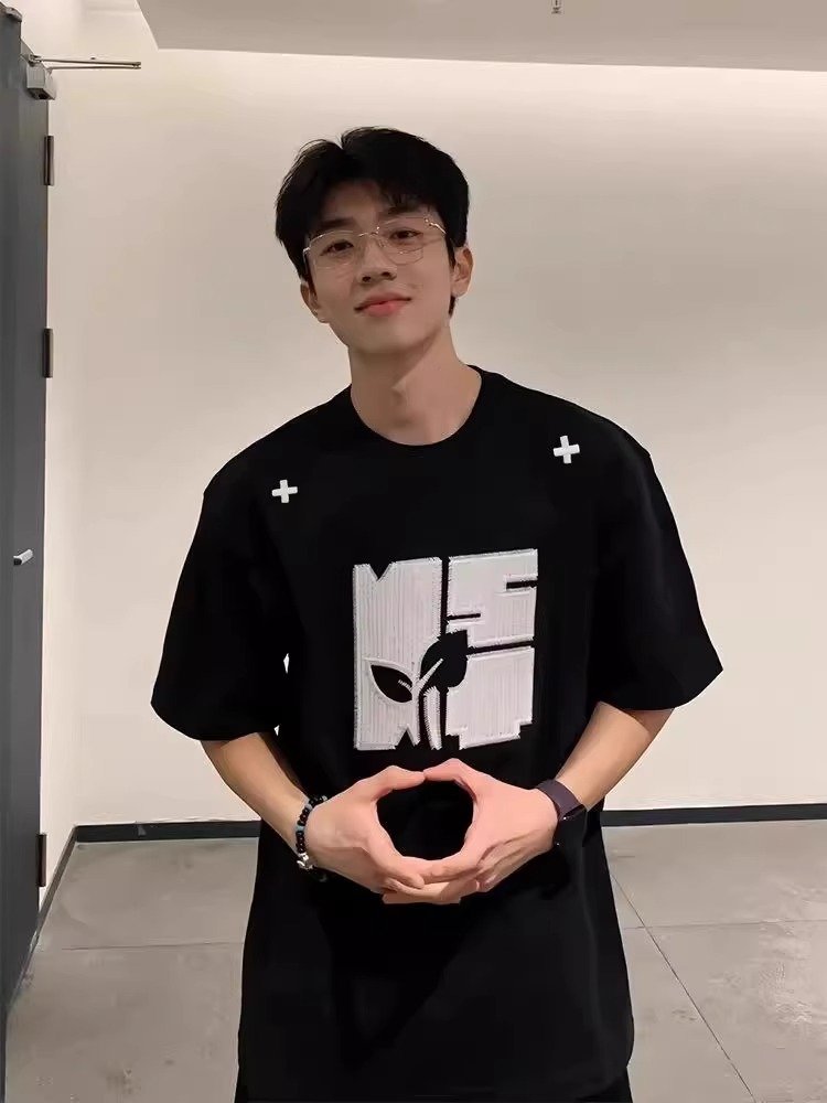 亿万少年bufu立体钉珠字母刺绣t恤男夏
