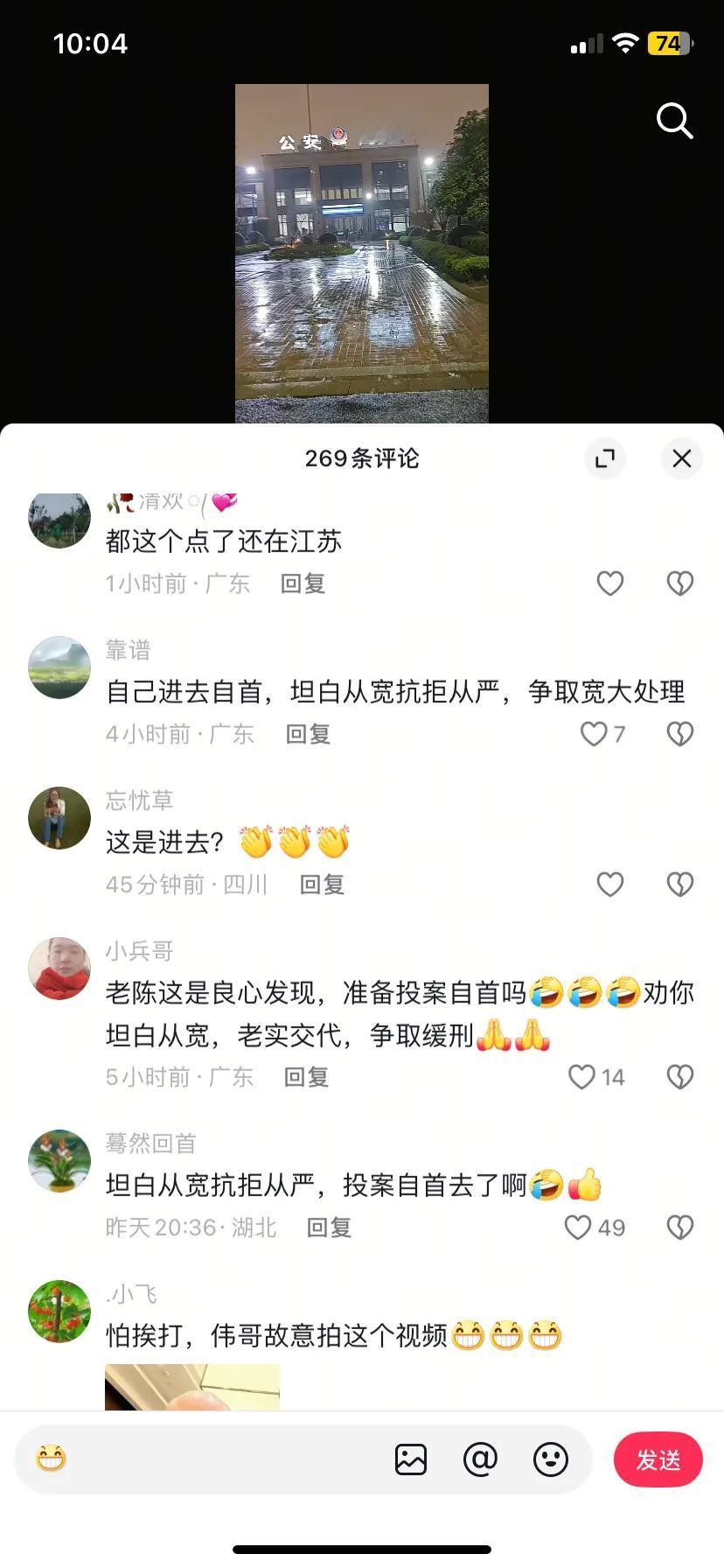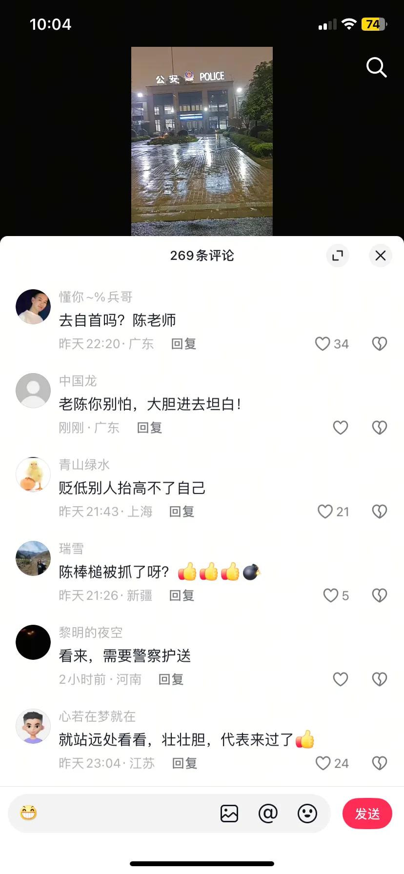 陈伟三个视频信息量大,这个点坐高铁去杭州,还大肆宣传,也不怕与刀迷正面相逢。最后两个视频,冒着大雨去了帽子叔叔那,估计也没什么好事,看看评论区,都是调侃他的多,让他好好坦白,也许是给自己壮胆吧,我看他也不敢去场外亮个相。