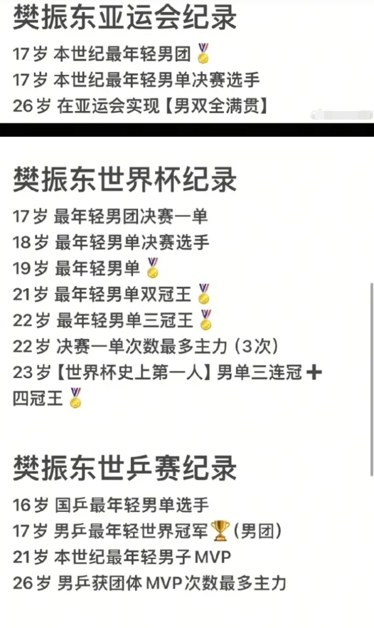 一、从小到大,任何一种比赛夺冠的最年轻记录都是樊振东!