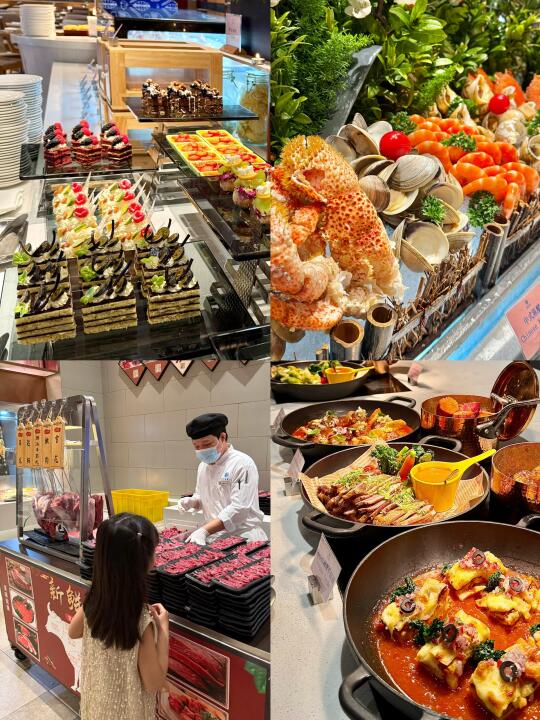 🔹海鲜种类🦞更是琳琅满目,还有现烤牛排、日料、现调鸡尾酒等非常丰富