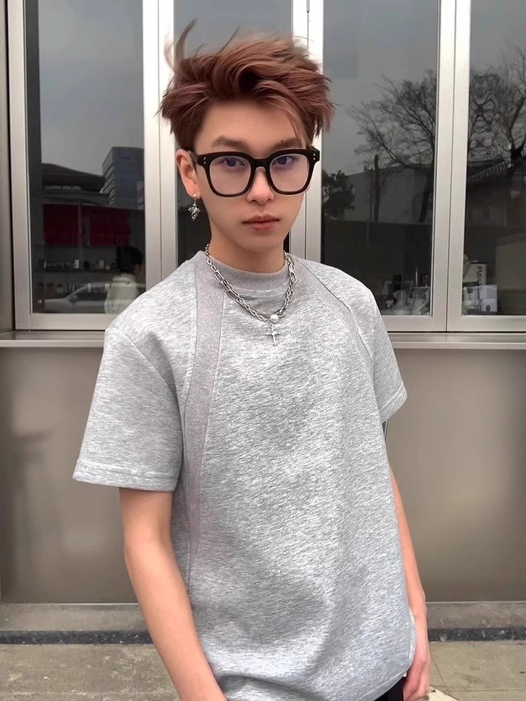 美式重磅太空棉T恤男夏季boxy正肩短袖