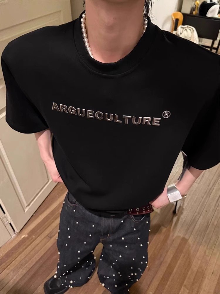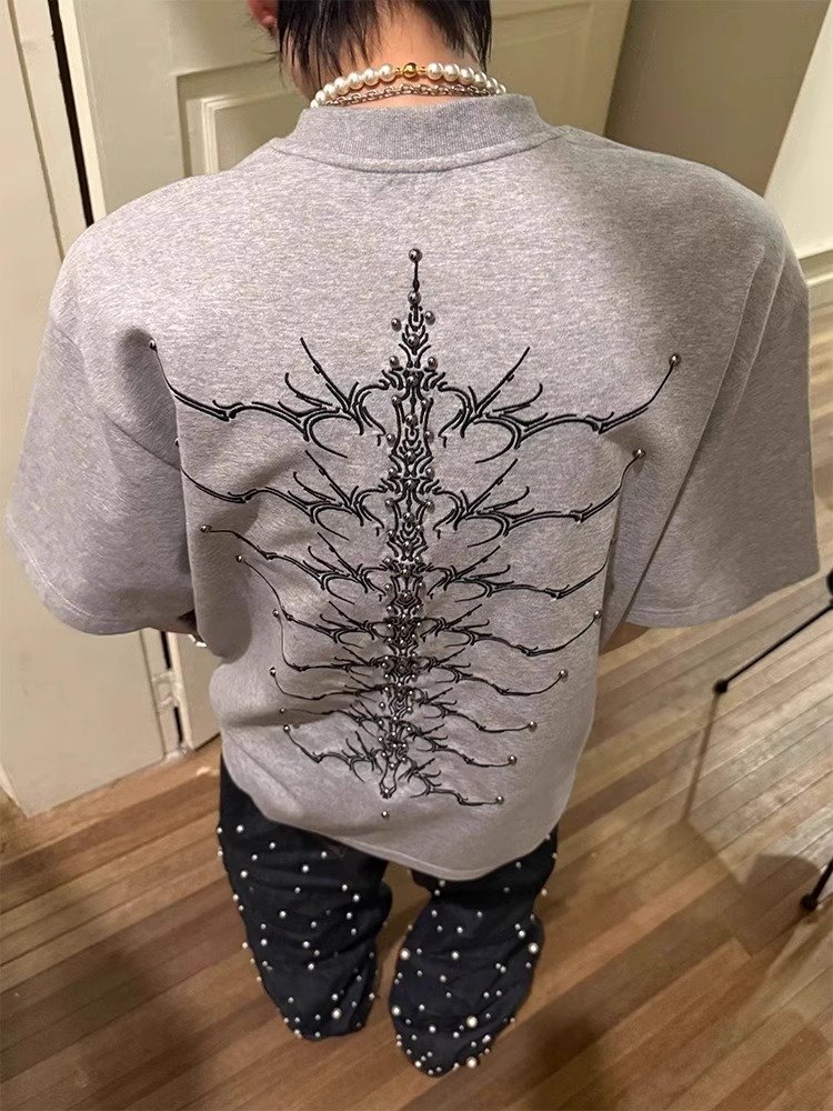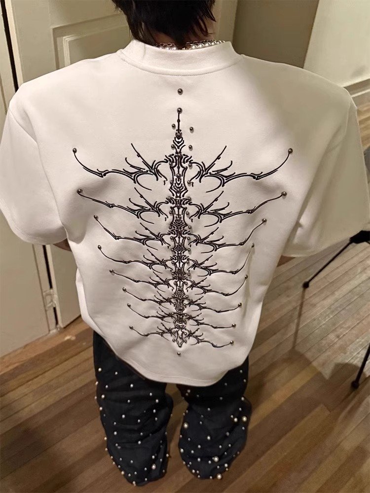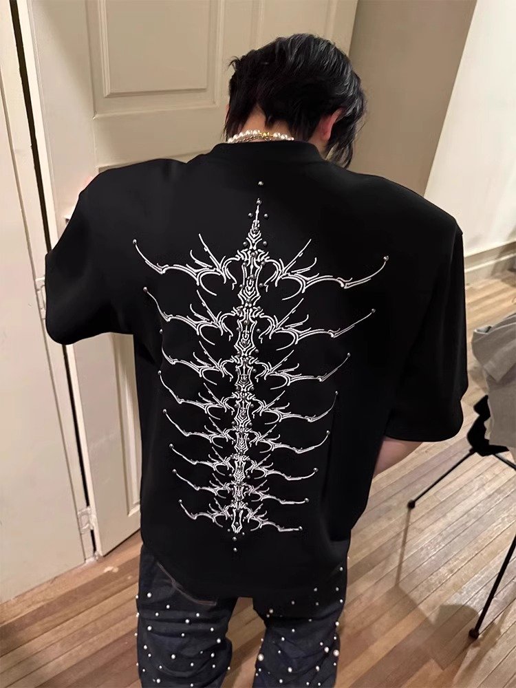 蛇瞳脊背刺绣正肩短袖男款夏季美式hiph
