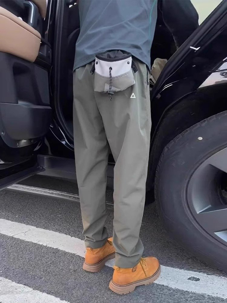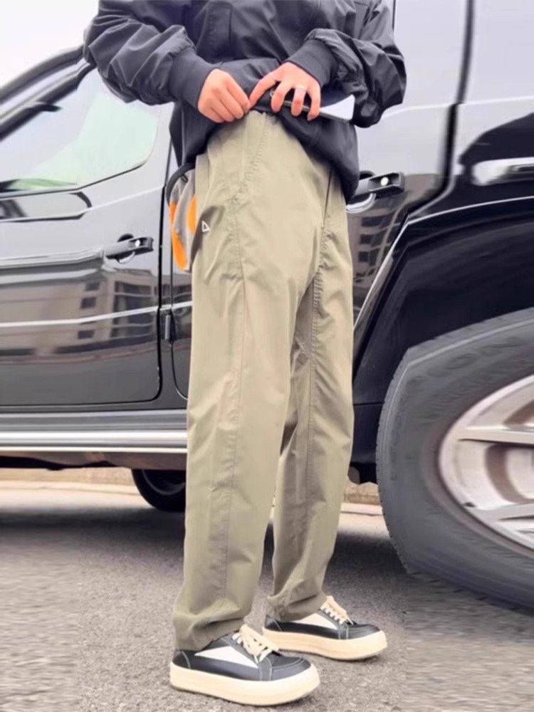 美式速干运动裤子男款夏季侧边拉链网眼直筒