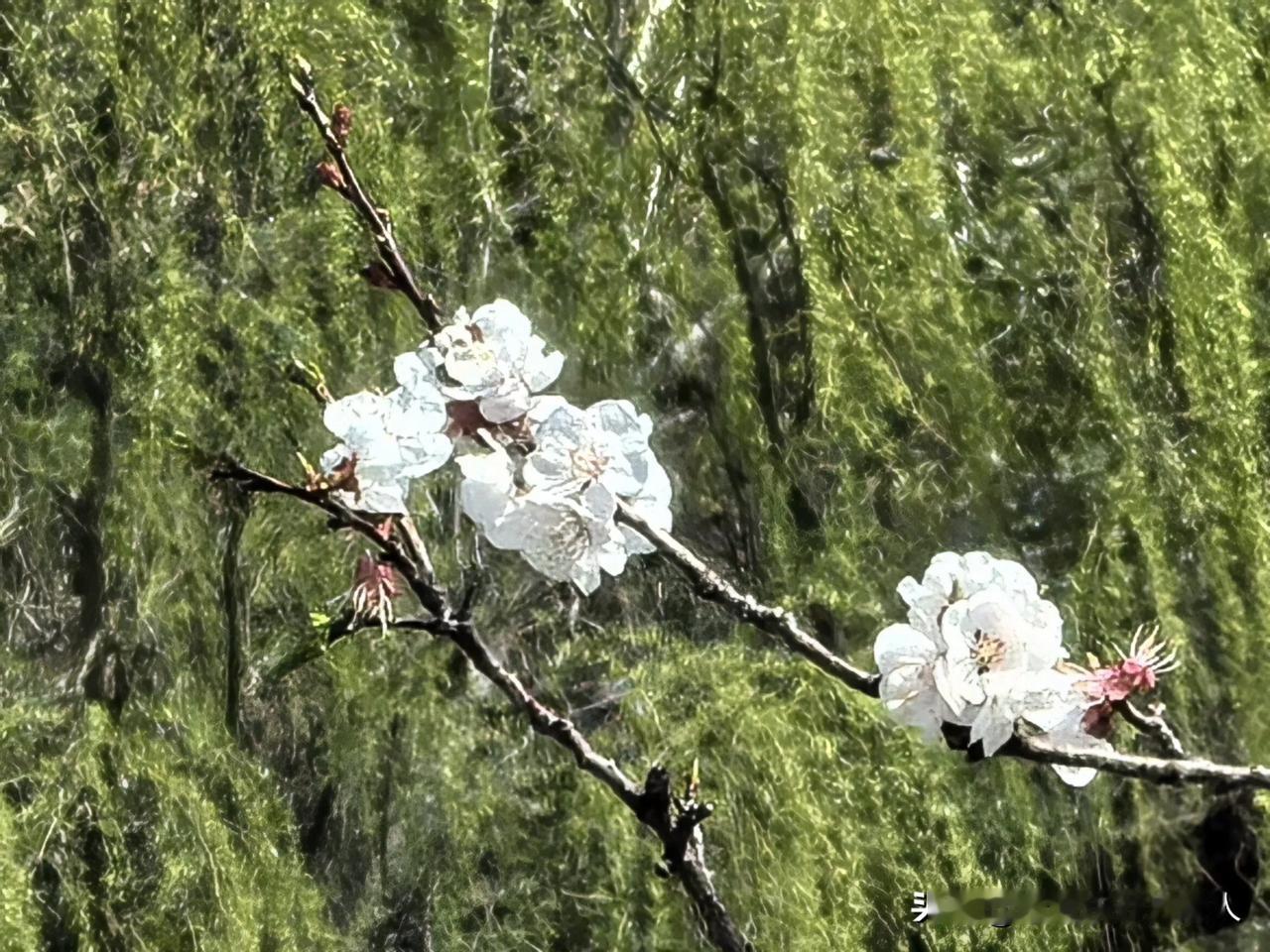 满树樱花似白头,袅袅东风细指柔。 瓣瓣飞雪迷人眼,浅草池边绿杨柳。