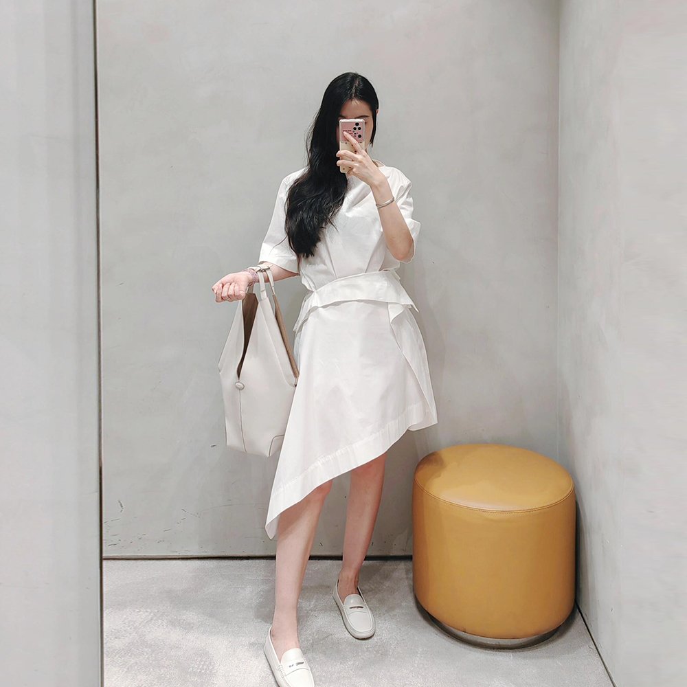 韩系不规则收腰白色连衣裙茶歇法式气质裙子