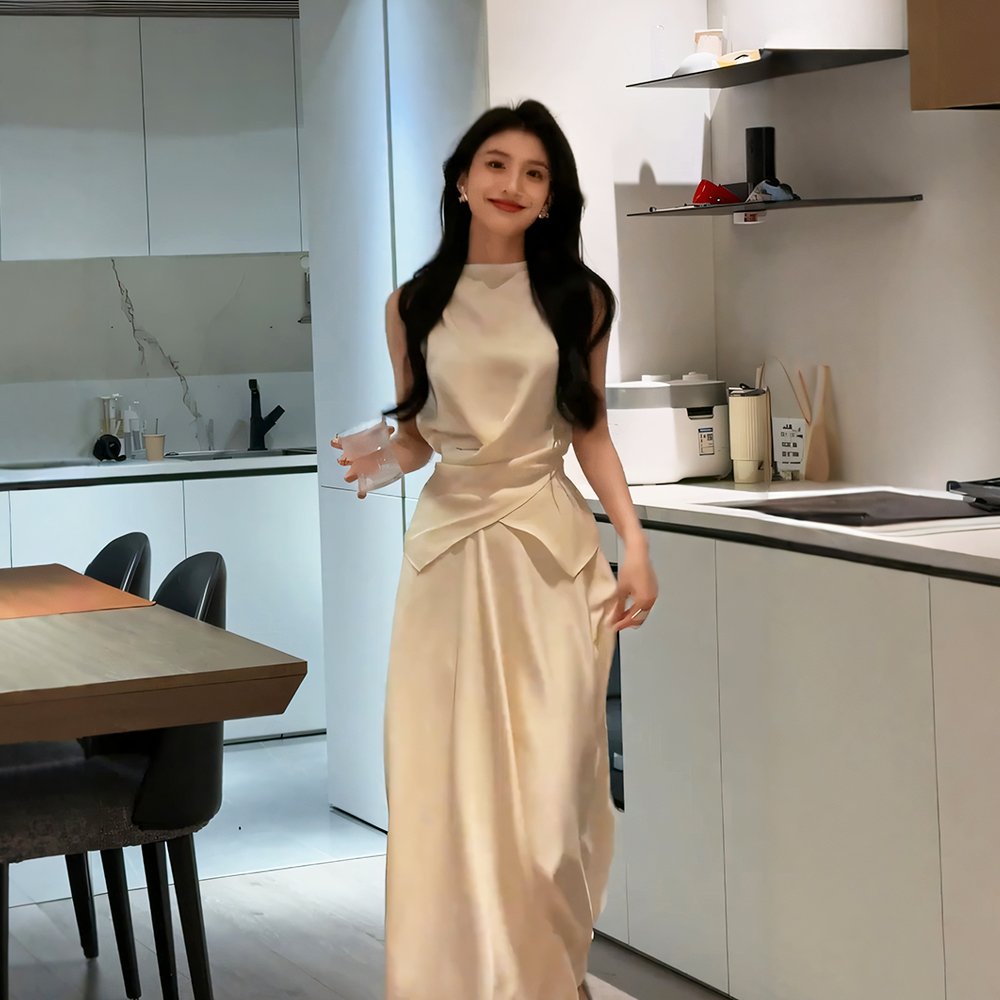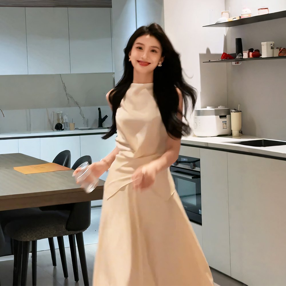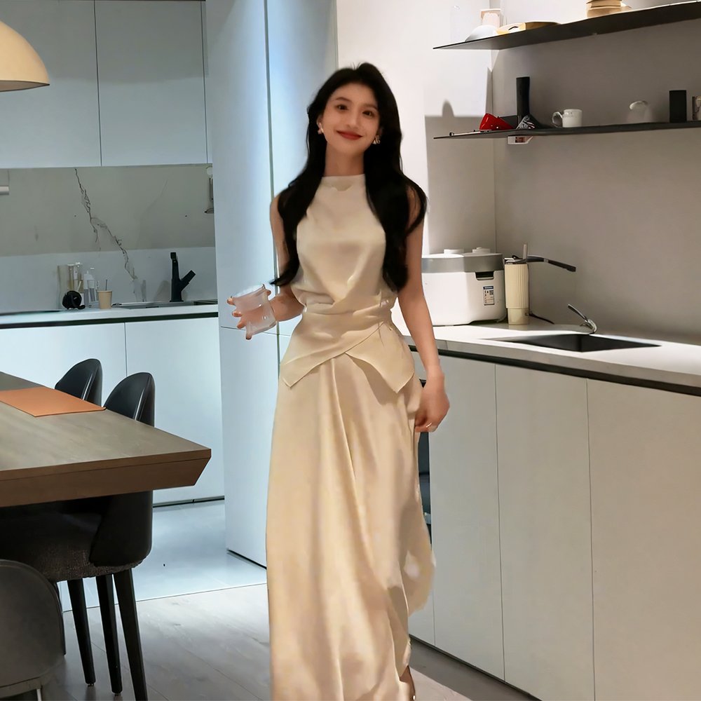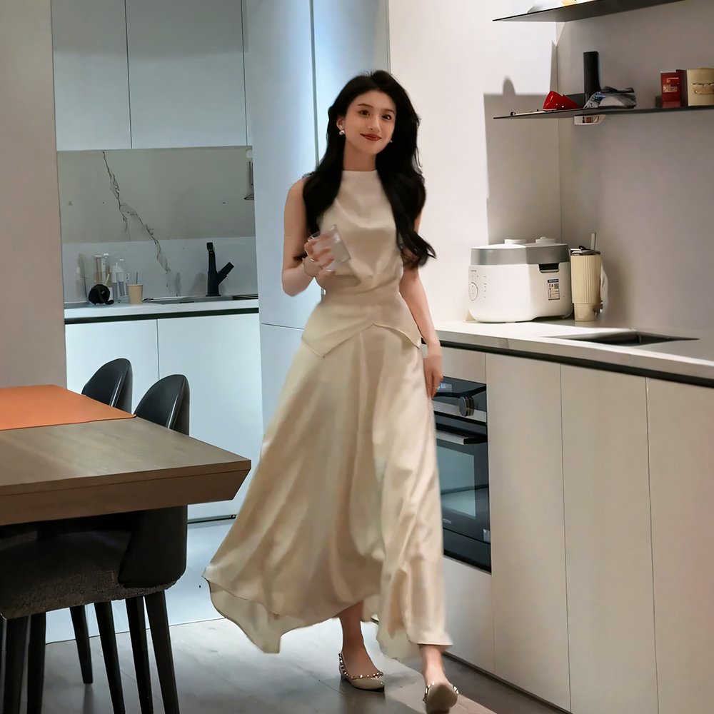 个子超好看韩系收腰白色连衣裙茶歇套装裙子