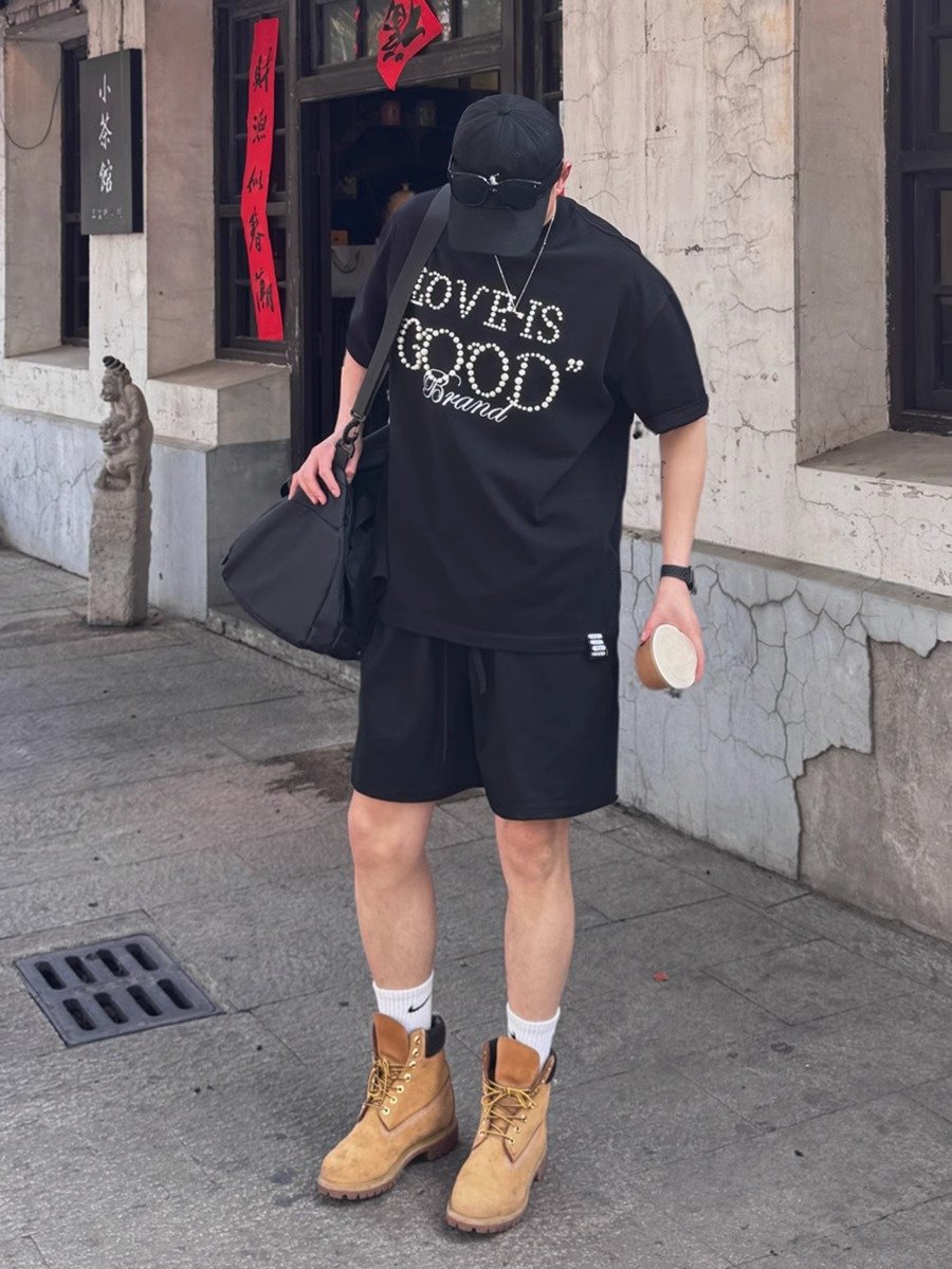 白色腰带工装短裤男款夏季宽松休闲直筒阔腿