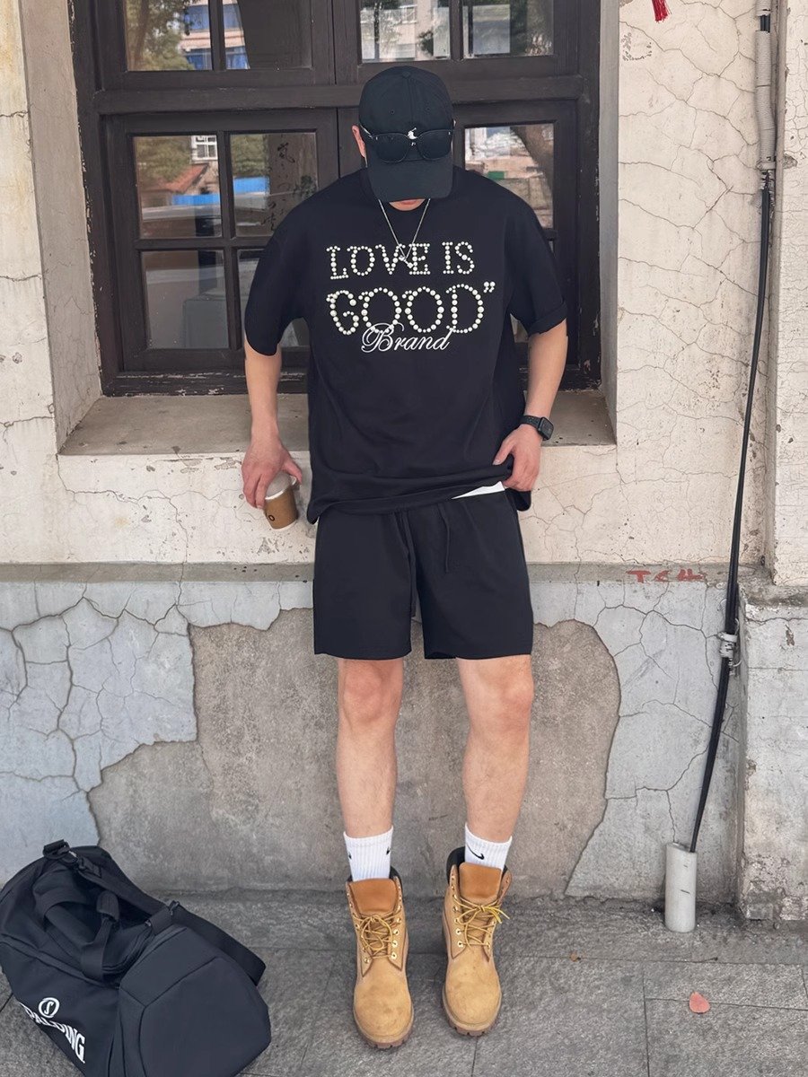 白色少年感短袖男款夏季三本针精梳棉t恤美