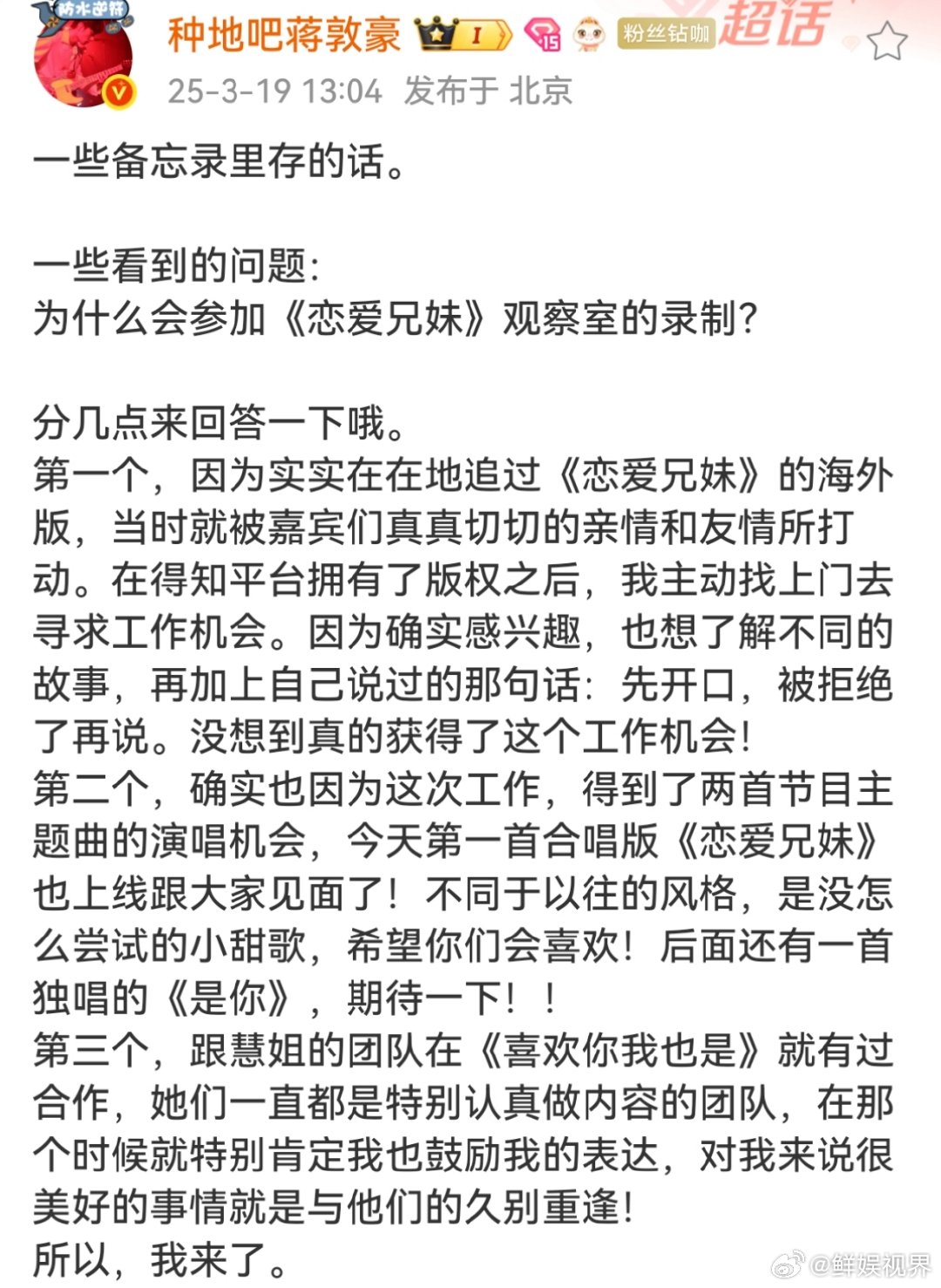蒋敦豪回应参加恋爱兄妹蒋敦豪先开口被拒绝了再说蒋敦豪先开口被拒绝了再说恋爱兄