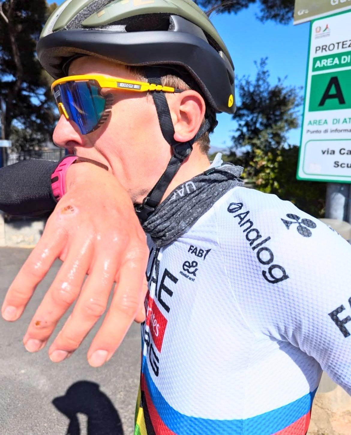 有车迷拍到了波加查在米兰圣雷莫的线路上训练(都不说他在考察线路了,估计最近天天骑)。波加查在车队官网上也谈到白路赛摔车之后有几天是不太舒服,但现在感觉好又回来了。