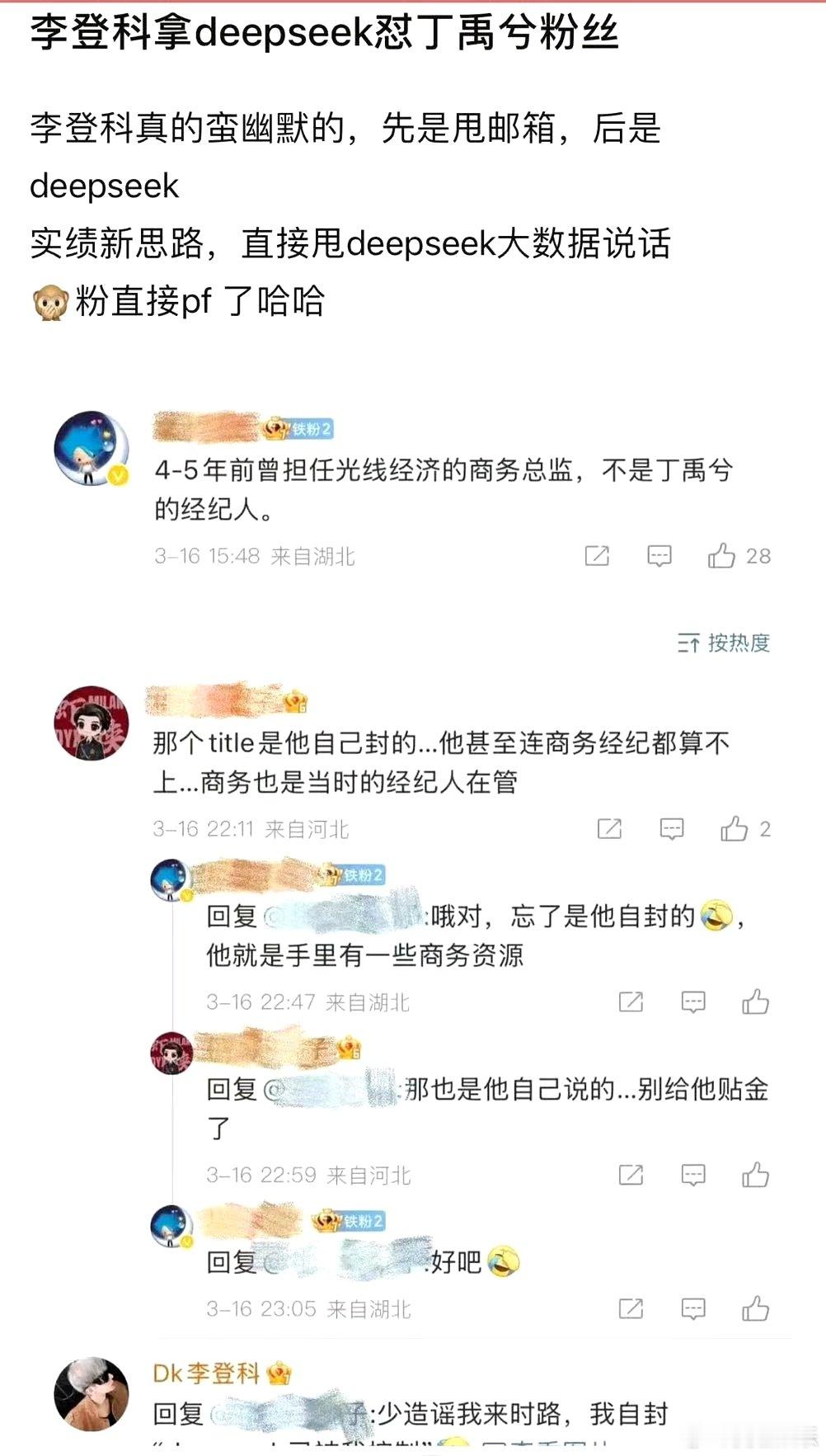 李登科用Deepseek做简历澄清 面对“自封光线商务经纪人”质疑,他不走寻常路,借Deepseek晒出与丁禹兮合作大数据报告,以硬核数据打破谣言,让质疑声瞬间“闭嘴”。这波操作堪称职场自证教科书,AI时代,数据就是底气!