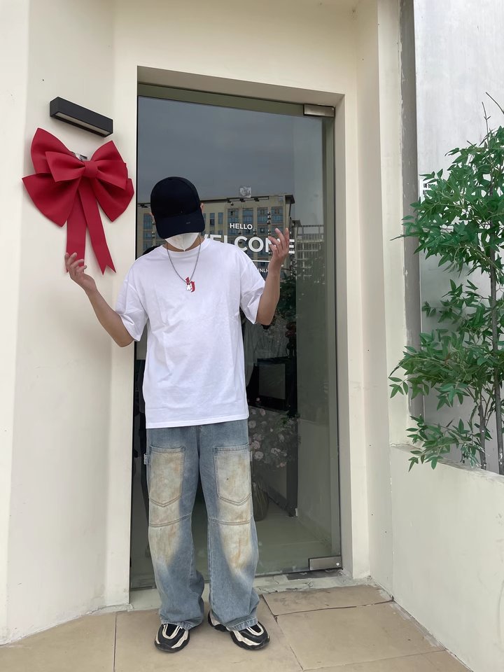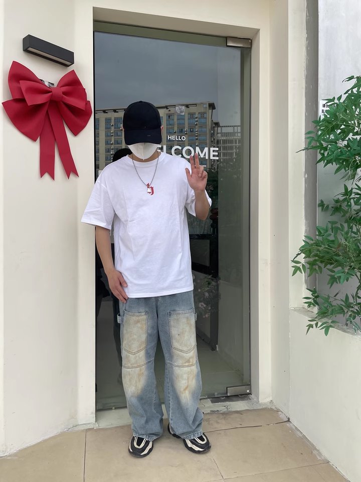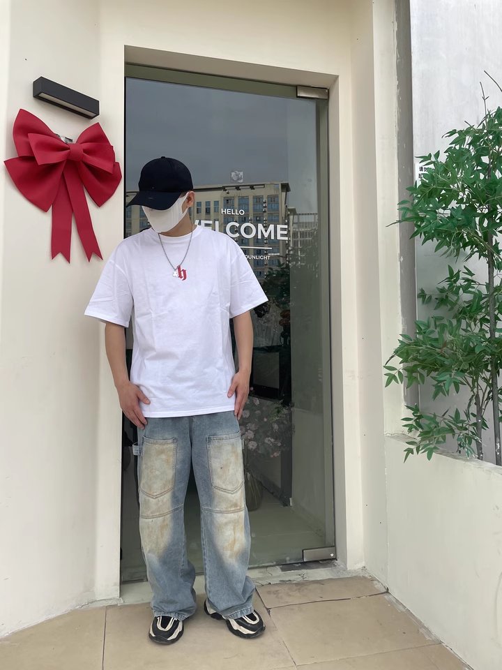 纯棉立体印花短袖搭配阔腿牛仔裤,简单宽松搭配,舒适的同时兼顾精致时尚。