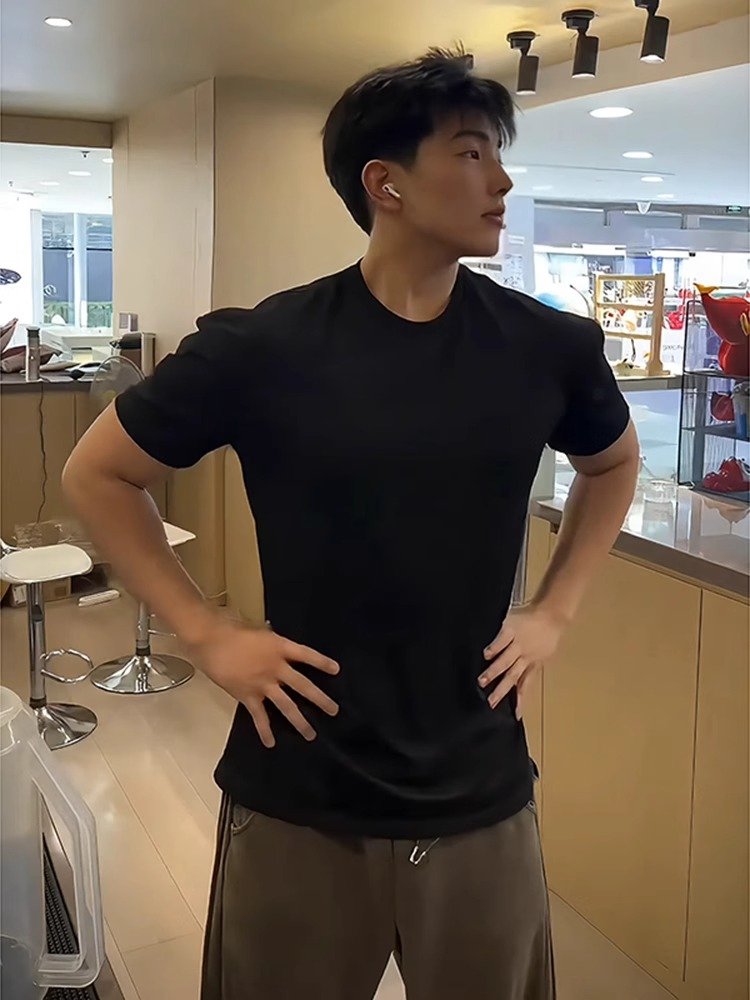 浅灰色针织短袖t恤男夏季cleanfit